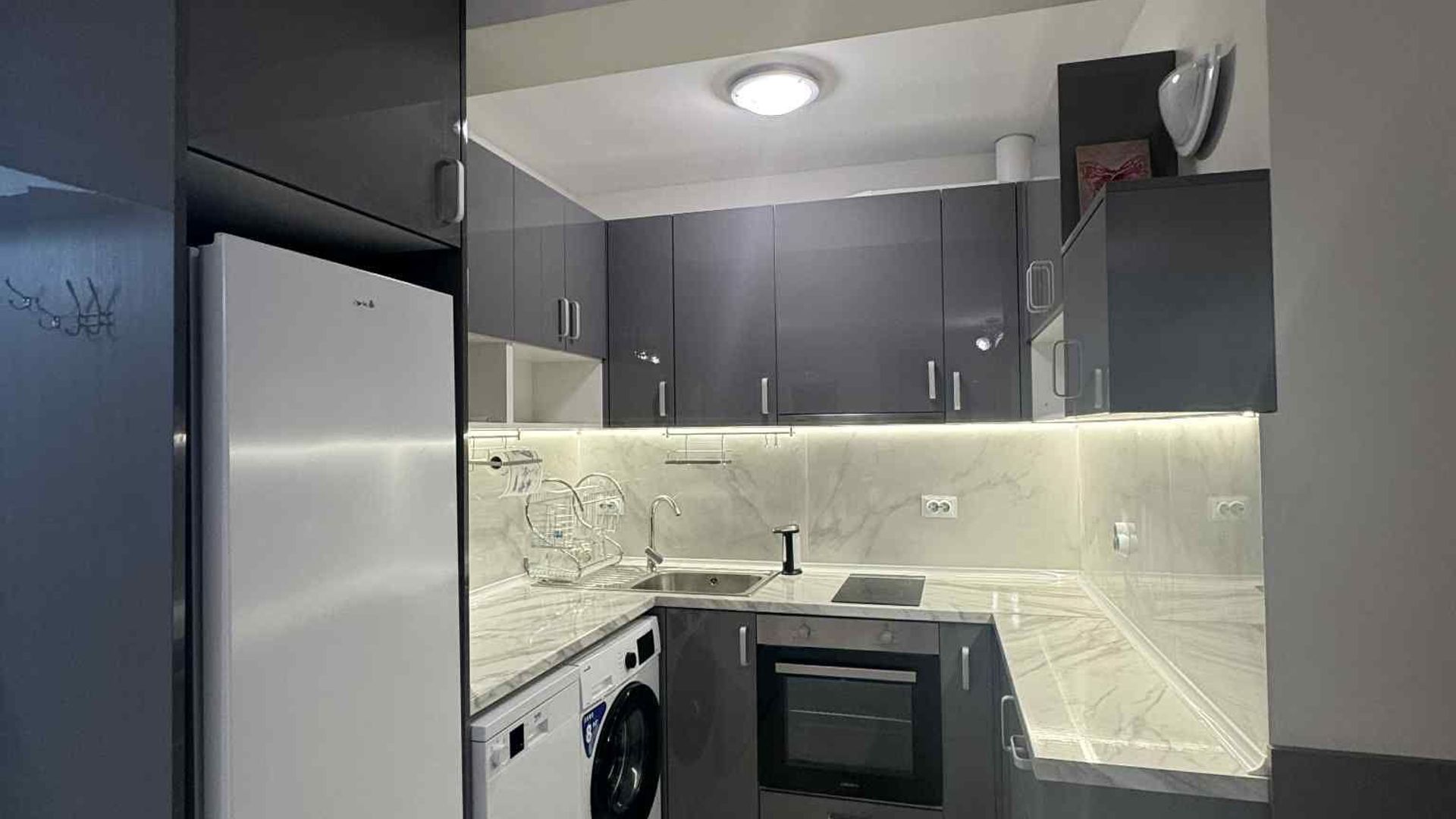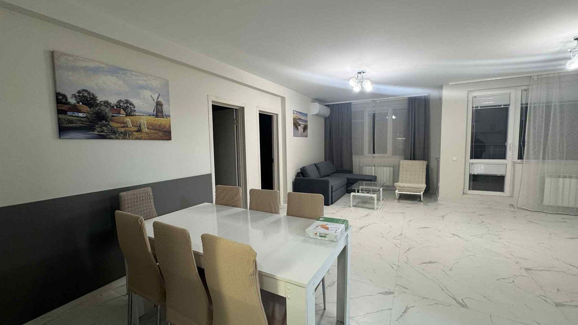 <br/>Предимства на имота: светъл и просторен на комуникативна локация. Намира се в непосредствена близост до парк, метростанция, заведения, хранителни магазини, училище, детска градина и търговски обекти. Апартаментът разполага с КЛИМАТИК, ТЕЛЕВИЗОР и СЪДОМИЯЛНА машина.