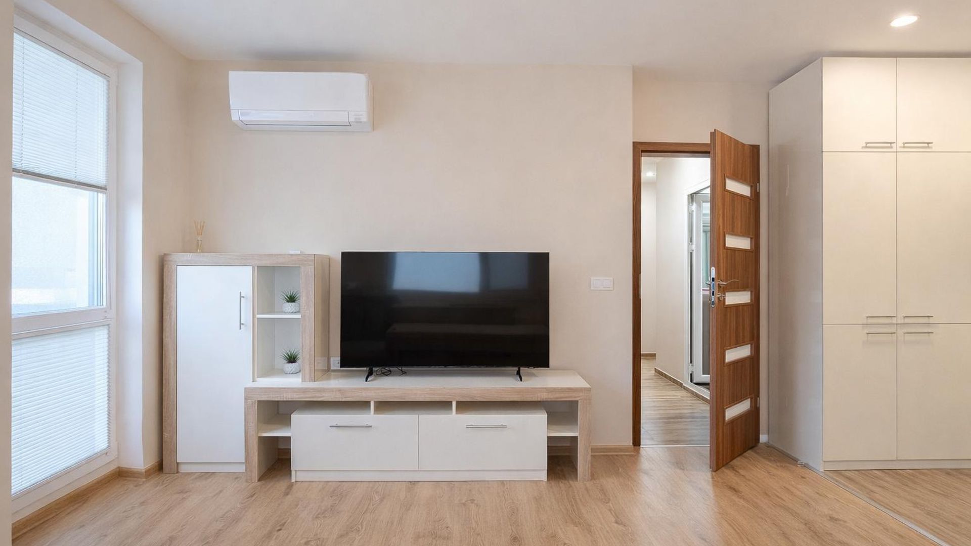 <br/>Входното антре води към просторен хол с кухненски бокс и излаз на тераса, следват самостоятелна спалня и баня с тоалетна.