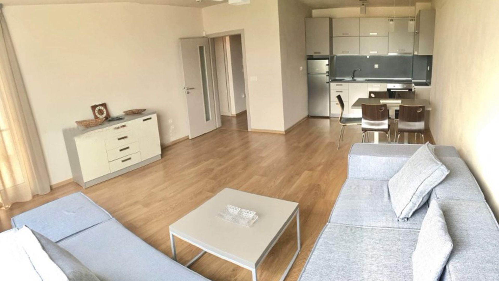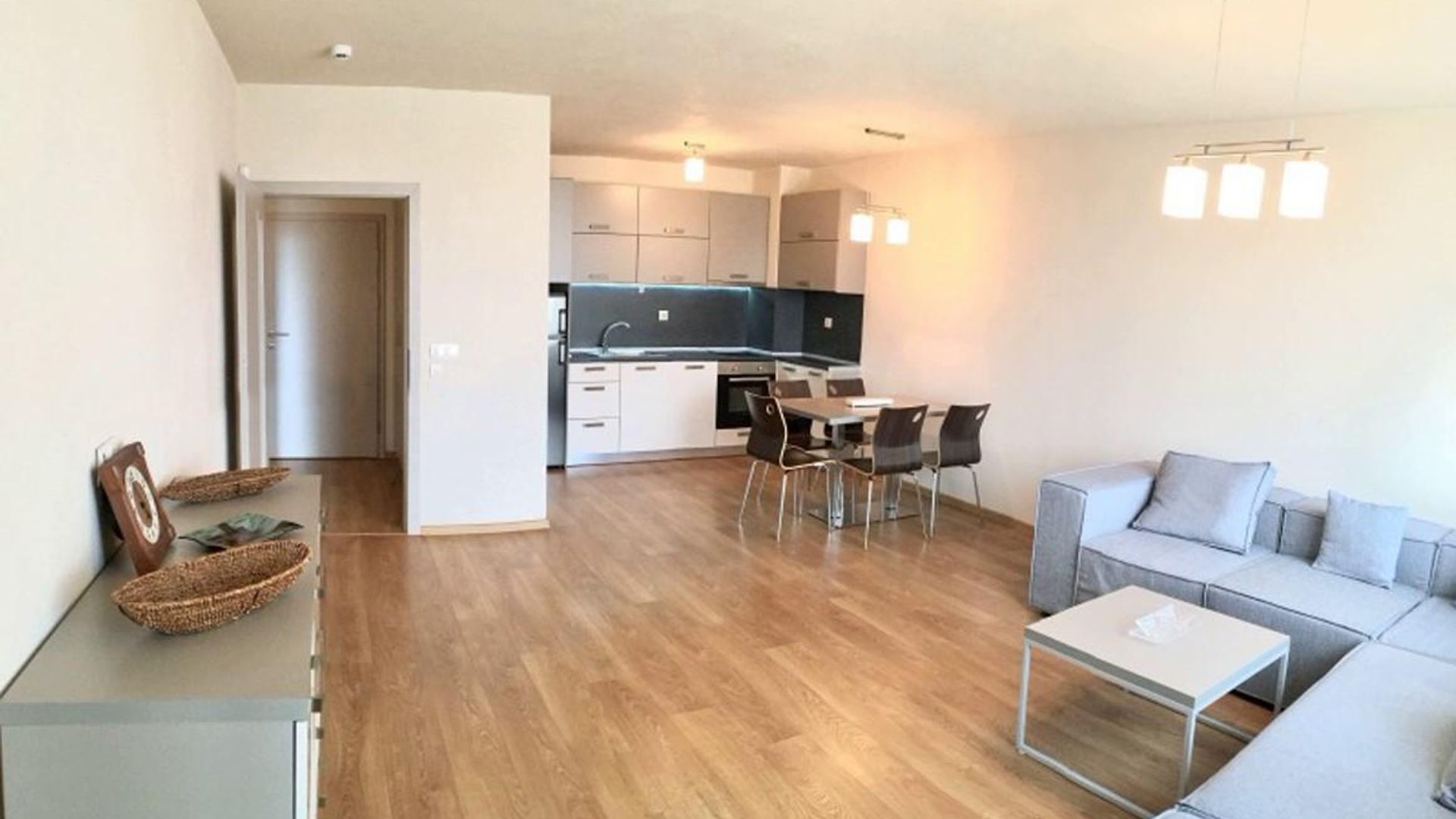 <br/>Жилището с площ 74 кв.м се намира на 4-ти етаж в нова седеметажна сграда. С южно изложение, то предлага много светлина през целия ден.