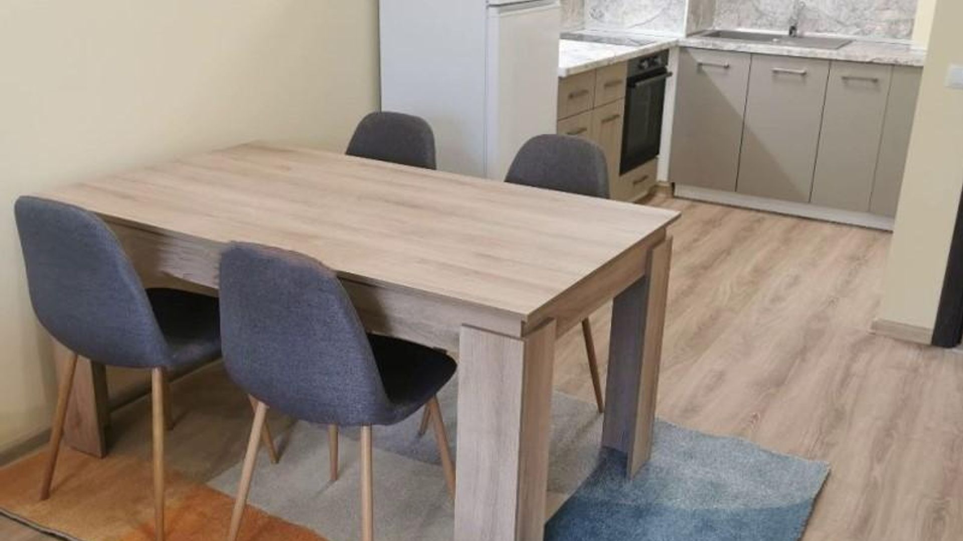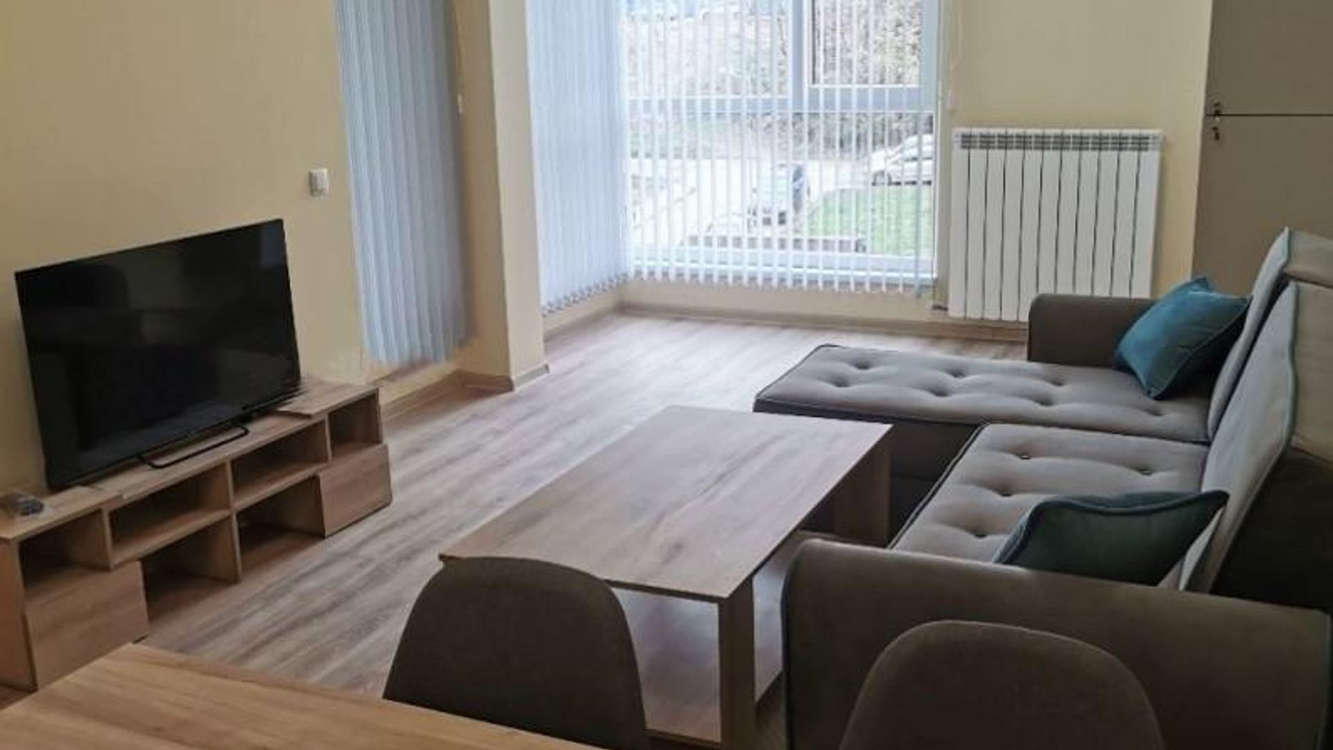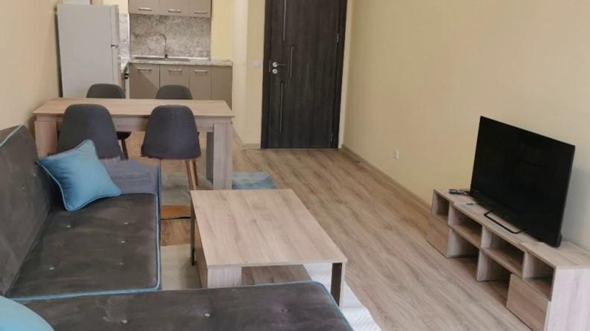 <br/>Разпределението включва хол, кухня, спалня и баня с тоалетна. Апартаментът се предлага обзаведен, с индивидуално газово отопление, интернет окабеляване и паркомясто.
