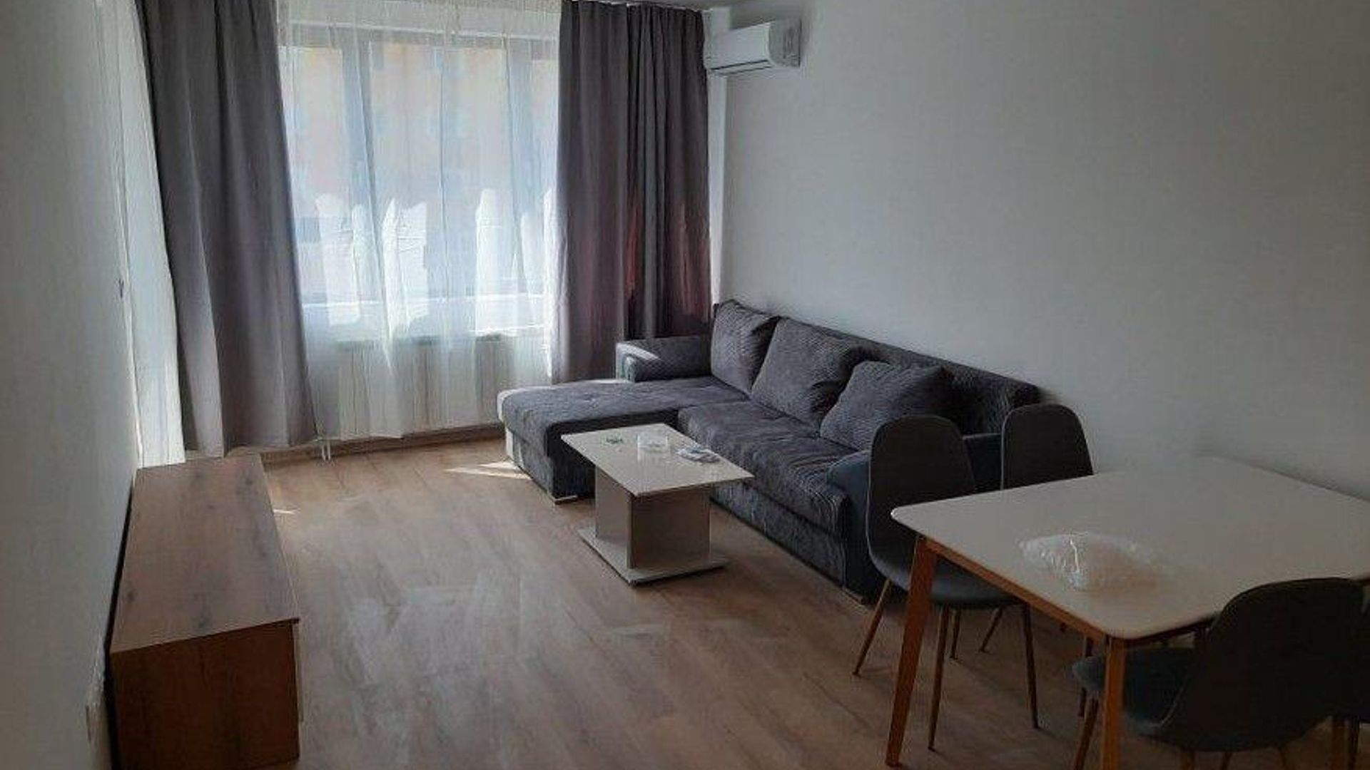 <br/>Апартаментът се предлага обзаведен и оборудван с всичко необходимо. Отоплява се на газ и разполага с климатик.