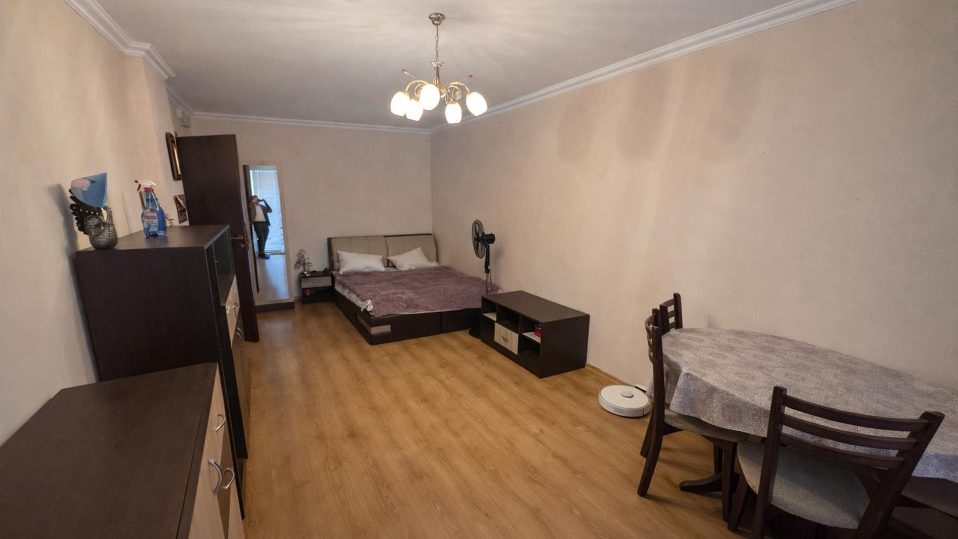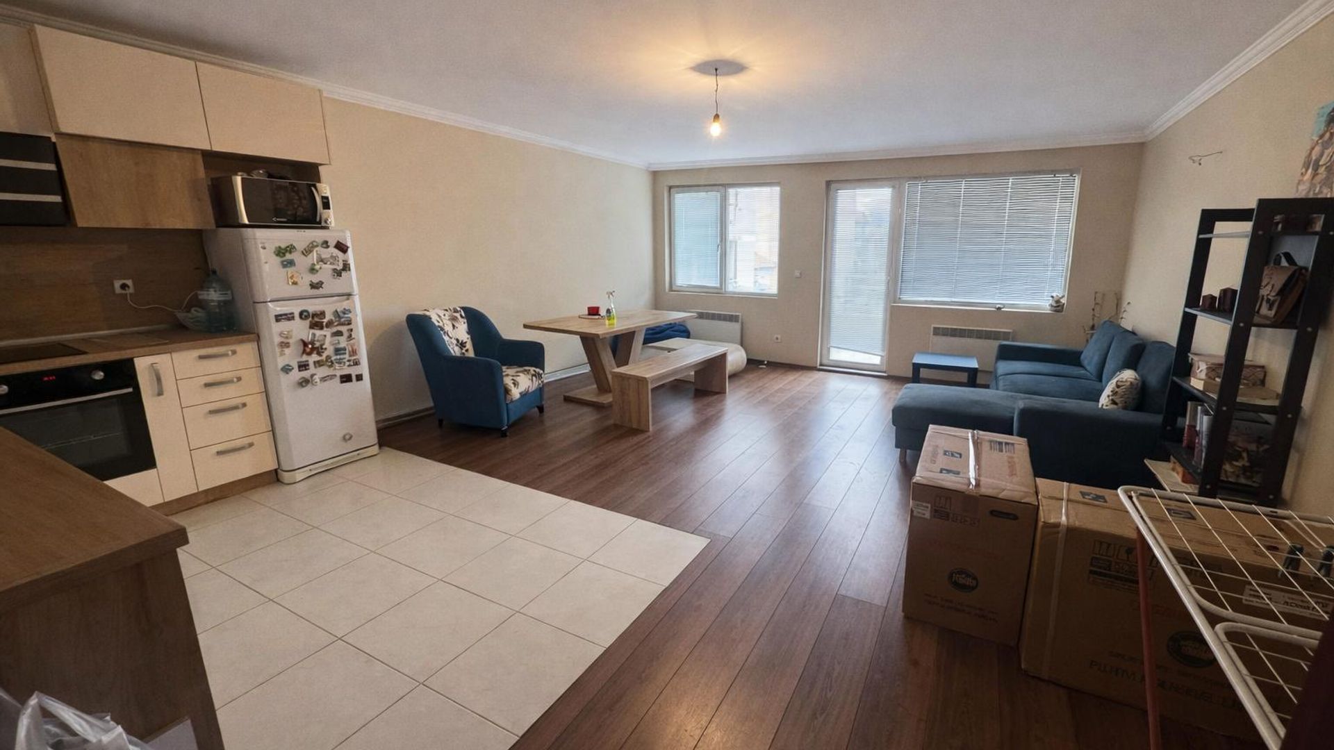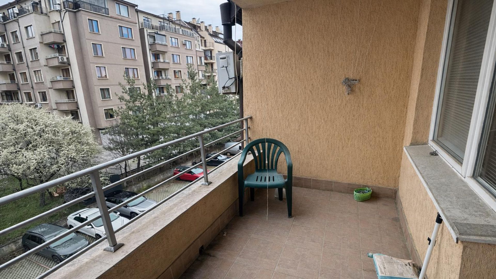 <br/>Апартаментът е обзаведен и отоплява се на ток. Намира се близо до спирки, което осигурява бърз достъп до градски транспорт. Месечният наем е 750 EUR.