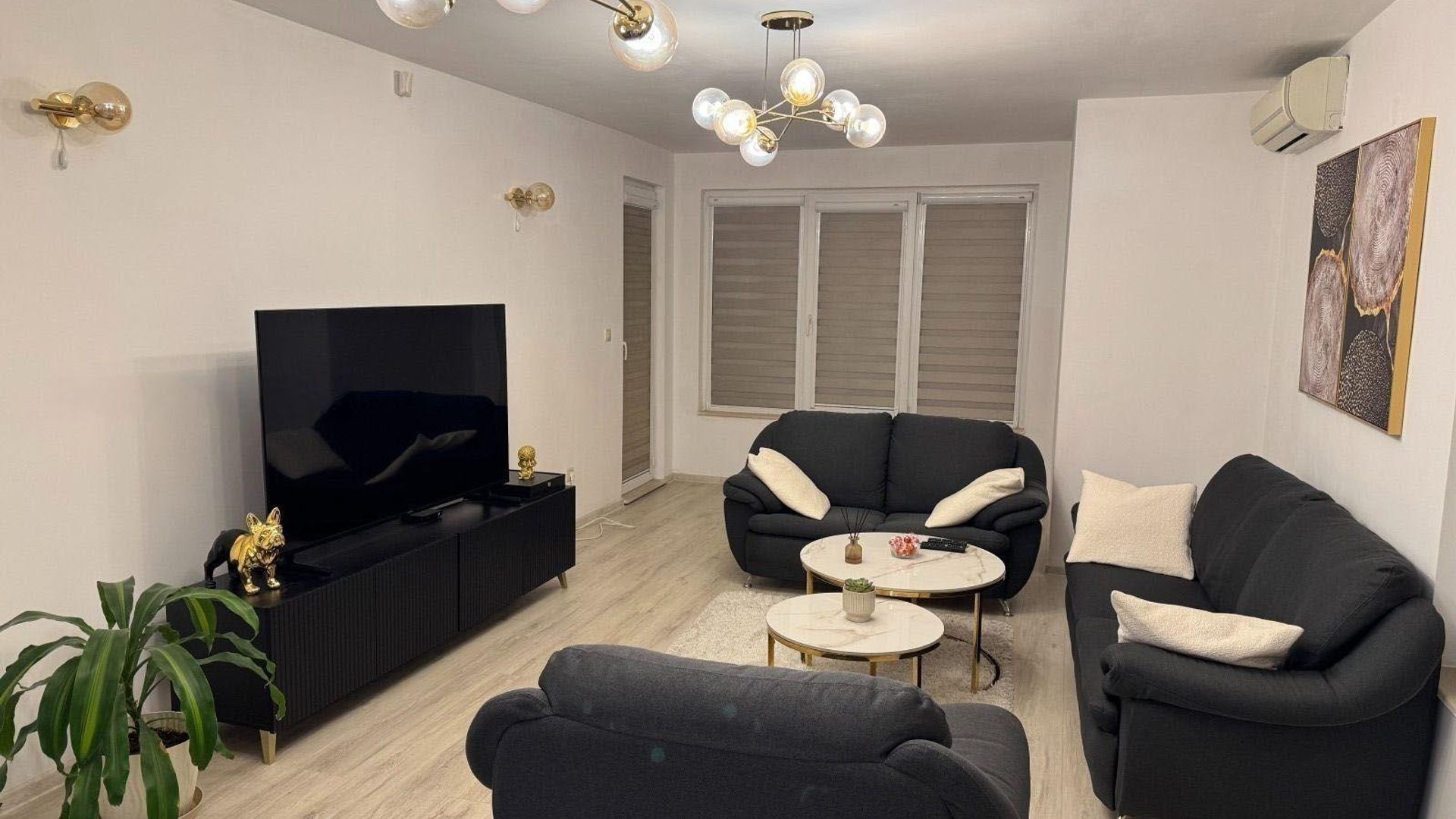 <br/>Предимства на имота: светъл и просторен на комуникативна локация. Намира се в непосредствена близост до парк, спирки на градски транспорт, заведения, хранителни магазини, училище, детска градина и търговски обекти. Апартаментът разполага с КЛИМАТИЦИ и ТЕЛЕВИЗОР.