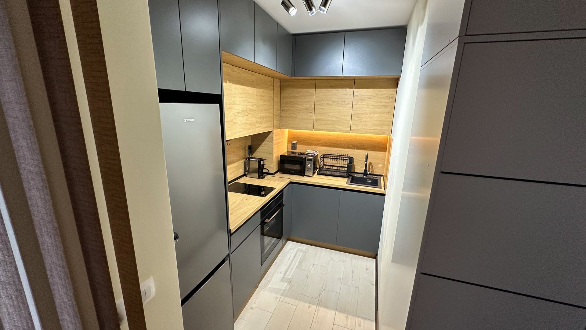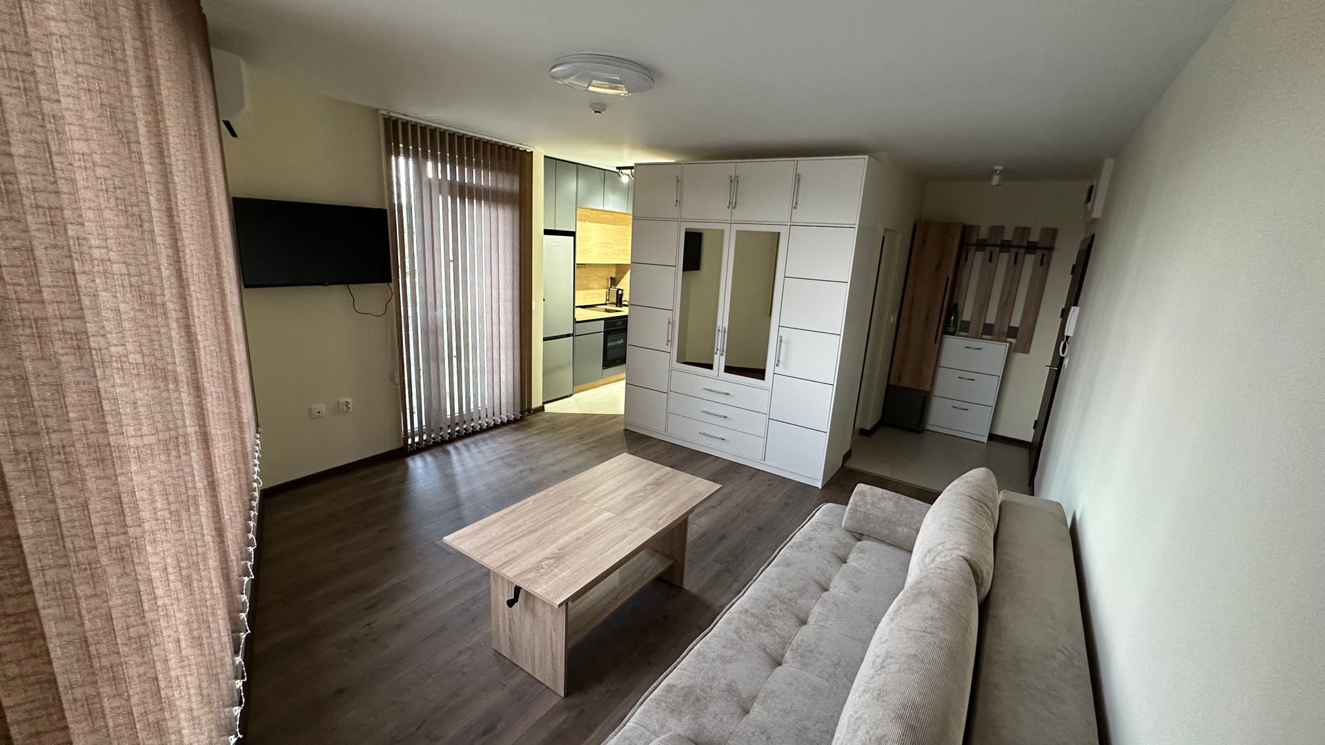 <p>ОТ СОБСТВЕНИК (частно лице), БЕЗ КОМИСИОННА ЗА БРОКЕРИ.<br><br>Предлагам за дългосрочно наемане чисто нов, стилно обзаведен едностаен апартамент в модерна нова сграда с асансьор.<br><br>Апартаментът е светъл и уютен, разположен на 5-ти жилищен етаж и включва: входно антре, комфортен хол с разтегателен диван (тип спалня за двама), отделно обособен кухненски бокс, модерна баня с тоалетна и тераса.<br><br>Идеален за един човек или двойка.<br><br>Имотът е напълно обзаведен с нови модерни мебели, кухня по проект с вградени маркови електроуреди, LCD smart телевизор, инверторен климатик от висок клас, а за допълнително удобство на бъдещите наематели са налични екстри като регулируемо LED осветление, пералня със сушилня, микровълнова фурна, кафемашина, прахосмукачка, инсталиран таванен простор и други.<br><br>Локация: В непосредствена близост до Кауфланд - Слатина, банки, аптеки, EasyPay, училища и детски градини.<br>Отлична транспортна свързаност - спирки на трамвай 20 и 23, тролейбуси 4 и 11, автобус 404.<br><br>Жилището не се предлага за хора, които отглеждат домашни любимци.<br><br>Отдава се от собственик и съответно не се дължи комисиона при наемане. Условия за наемане: 1 месечен наем и депозит в размер на още 1 месечен наем.<br><br>Свободен за нанасяне веднага.</p>