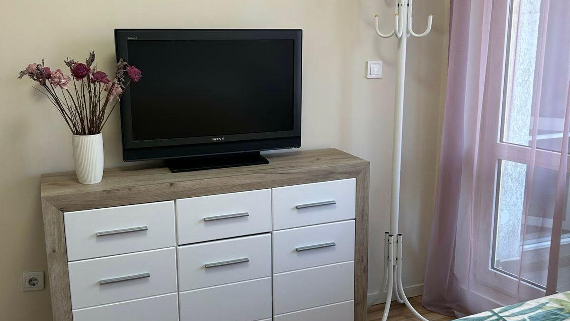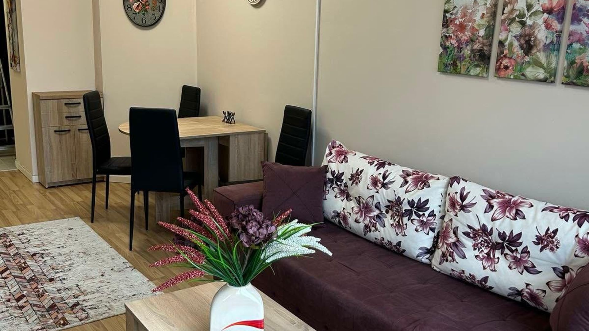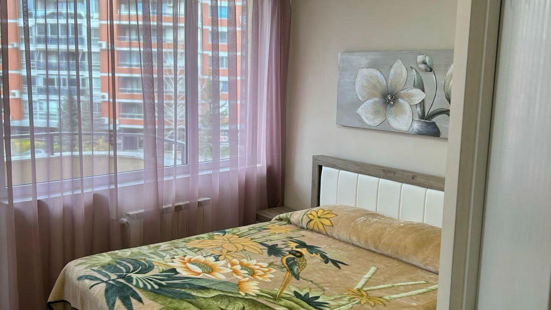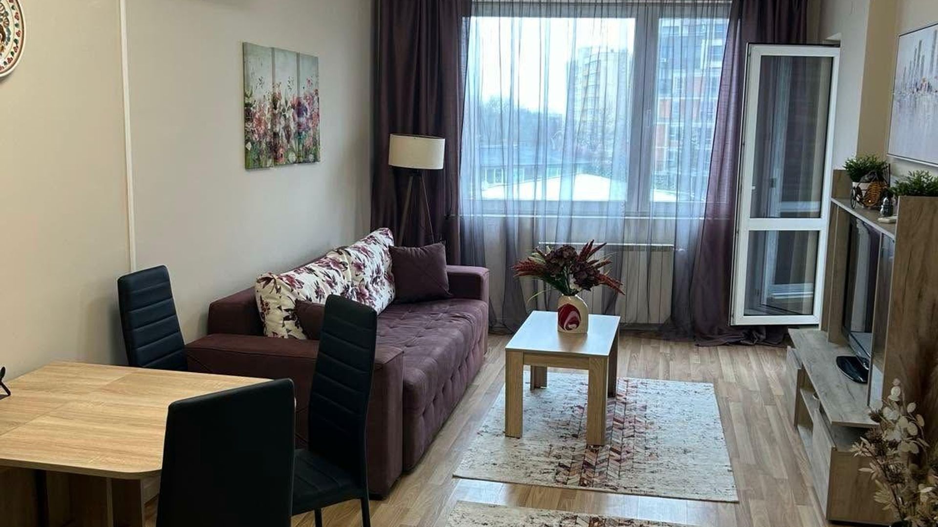 <br/> Обзаведен с качествени мебели и оборудване, апартаментът отоплява се на ТЕЦ и е разположен близо до спирки, което улеснява придвижването в града. Месечният наем е 700 EUR.