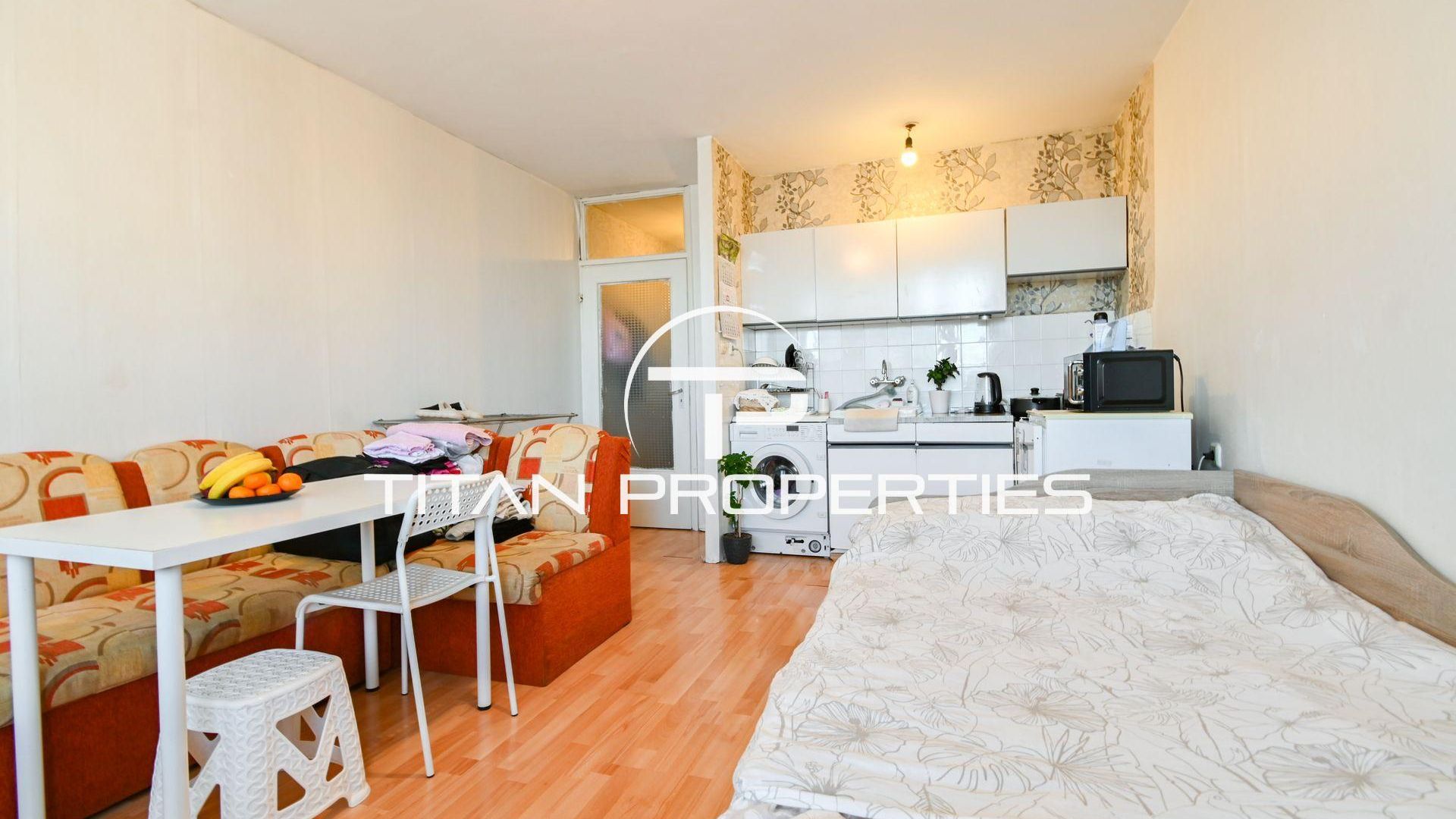 <br/>Titan Properties - офис Младост предлага едностаен апартамент под наем в ж.к. Сухата река, в тих и семеен район с бърз достъп до центъра на София.