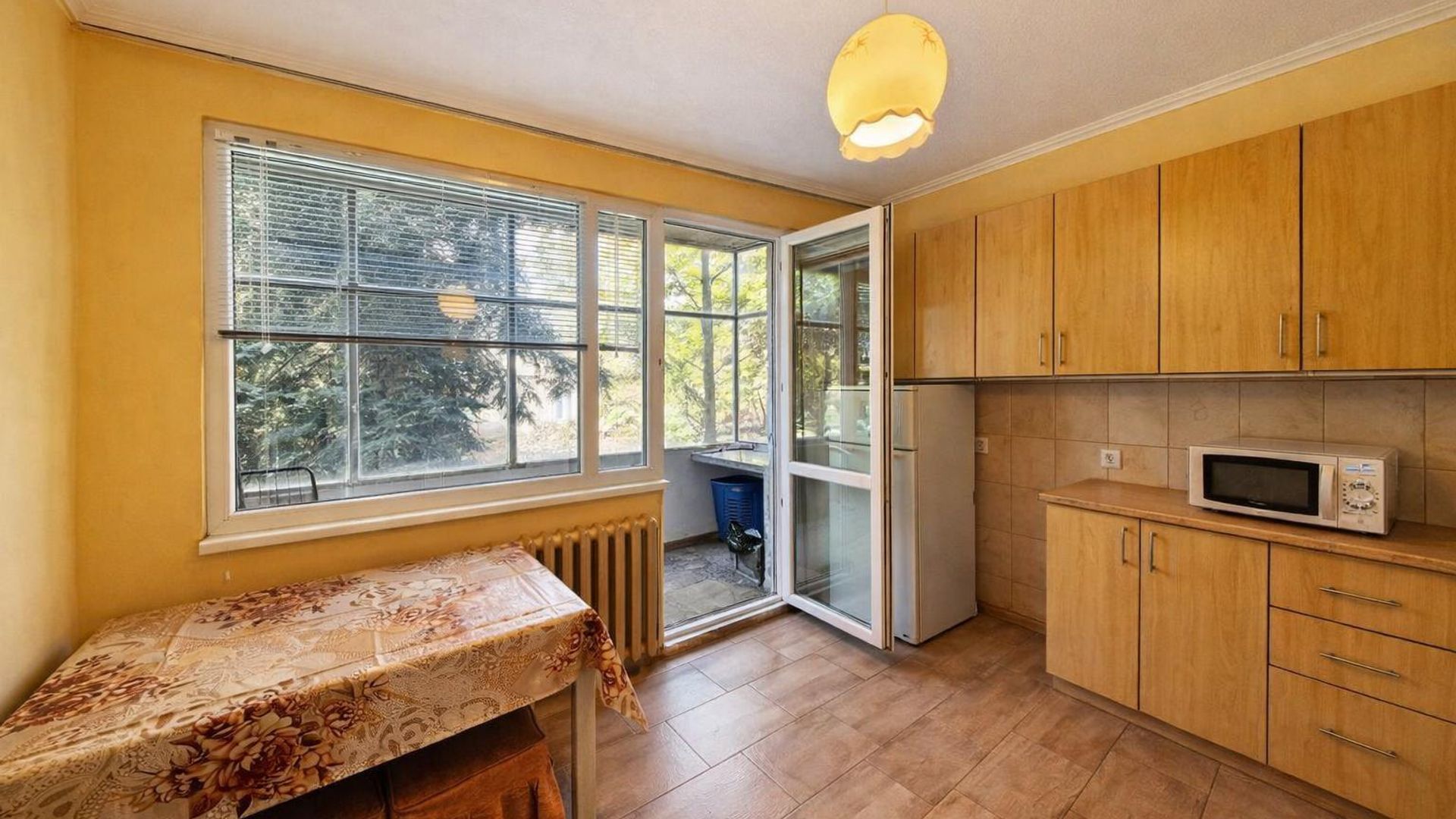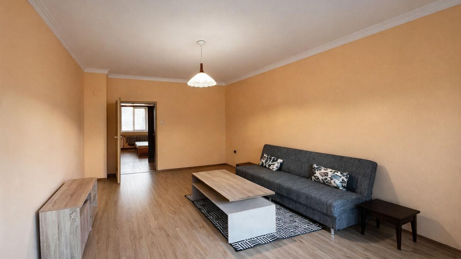 <br/>Жилището с площ 65 кв.м е разположено на първи етаж в шестетажна сграда. Източното изложение осигурява мека сутрешна светлина.