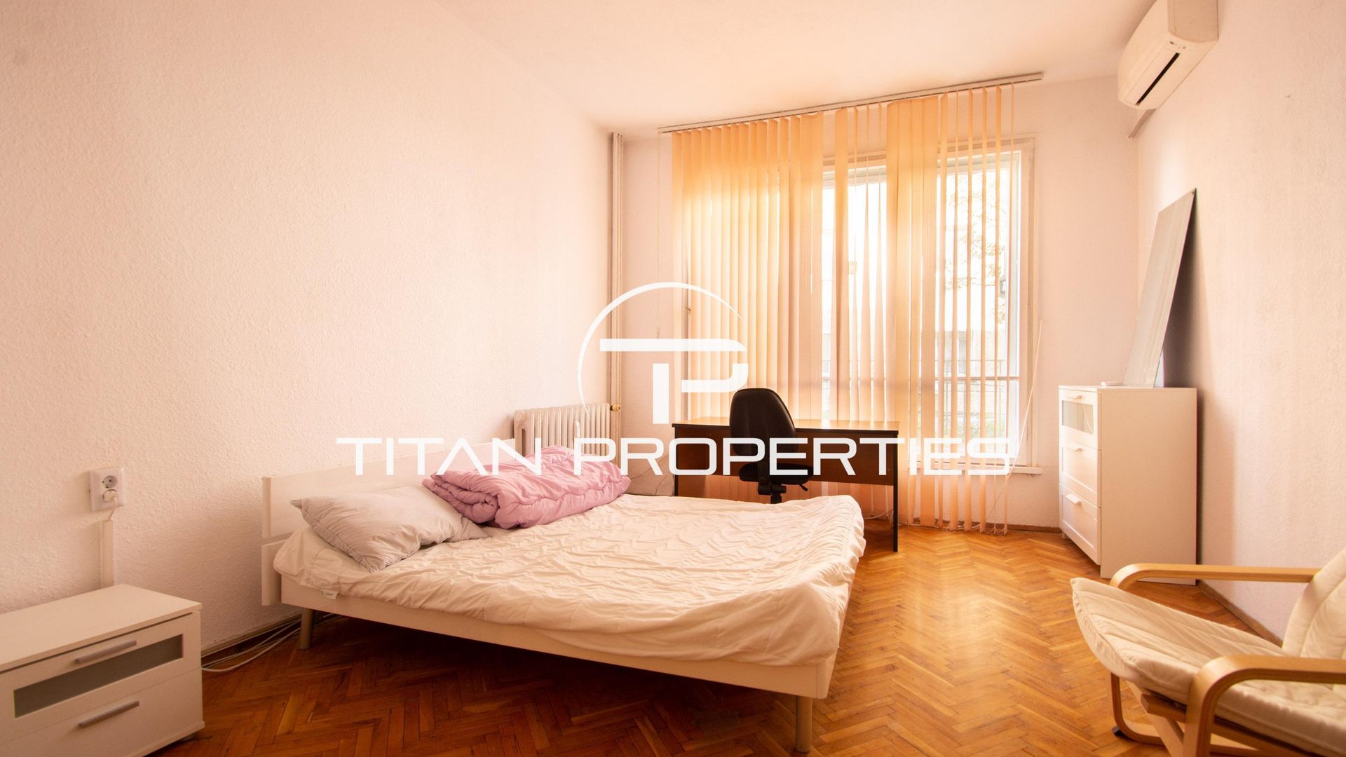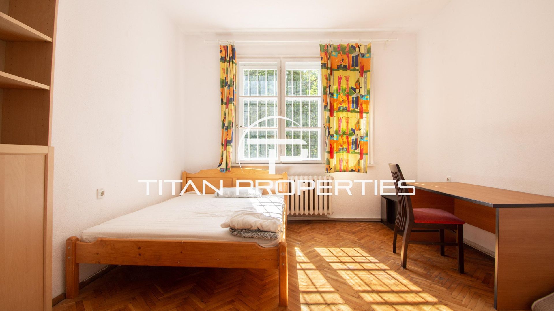 <br/>Титан Пропъртис - офис Младост с радост предлага на Вашето внимание четиристаен апартамент под наем в Център - НДК, София. Жилището с площ 100 кв.м е разположено на 2-ри етаж в тухлена шестетажна сграда. Изложението е изток/запад. Разпределението включва входно антре, хол, три спални, кухня, балкон и две бани. Апартаментът е обзаведен, отоплява се на ТЕЦ, разполага и с климатици.