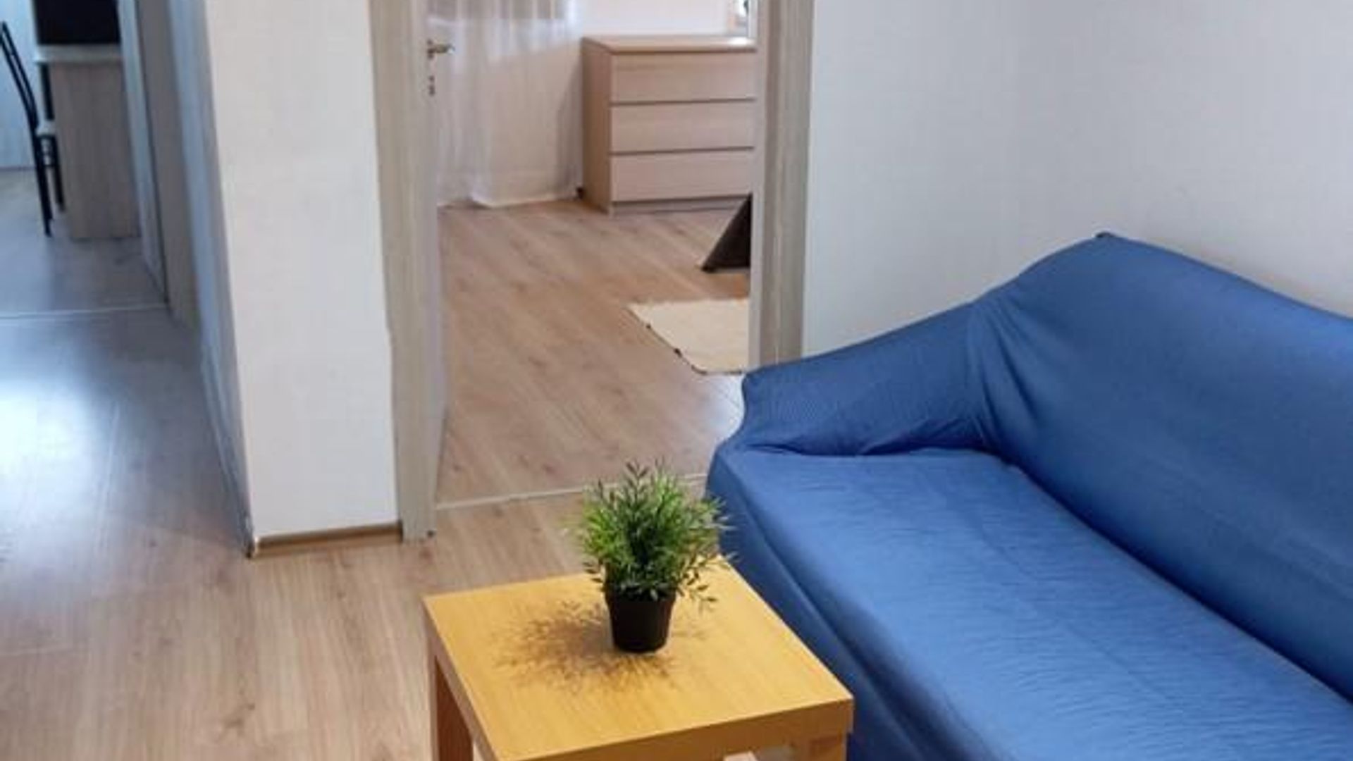 <br/>Разпределението включва хол с кухненски бокс, две спални и баня с тоалетна. Апартаментът е напълно обзаведен и климатизиран, отоплението е на ток.