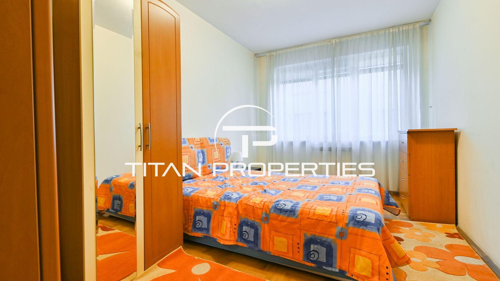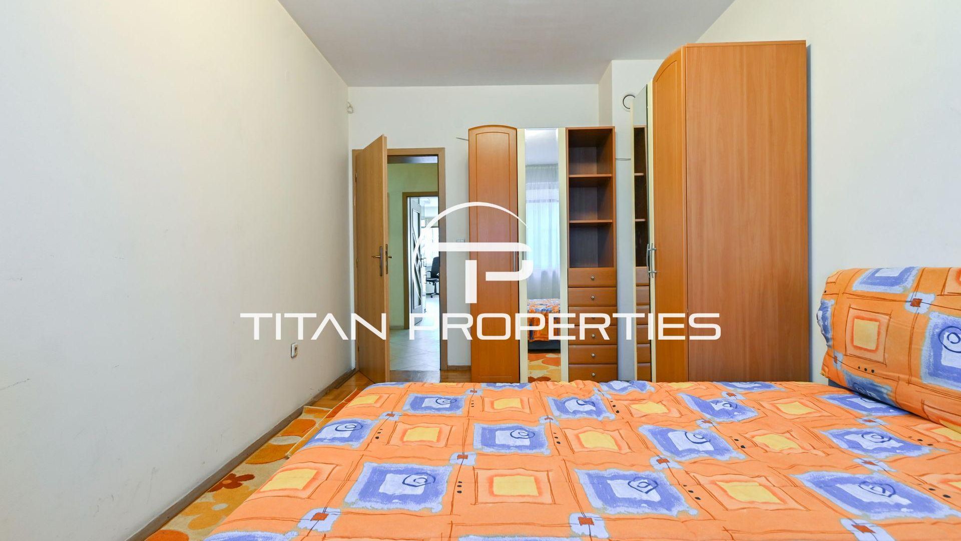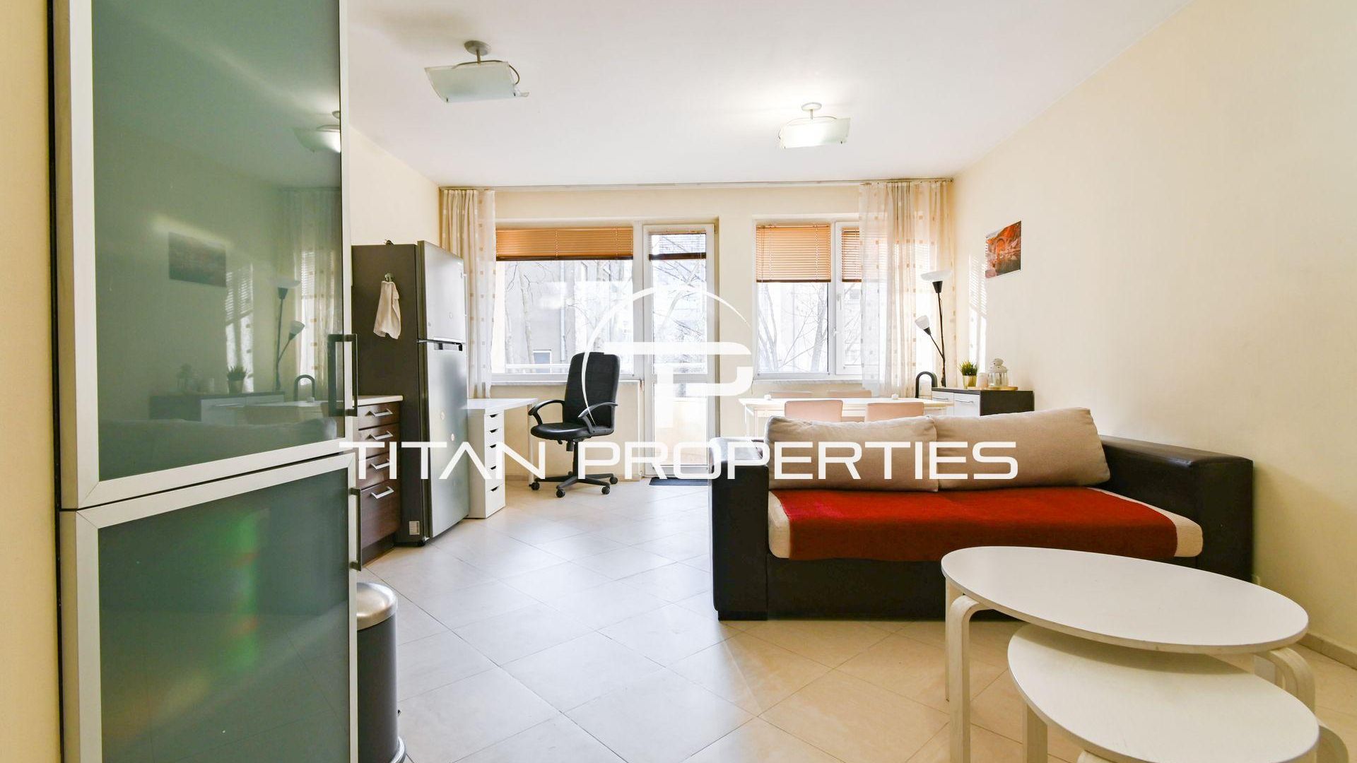 <br/>Титан Пропъртис - офис Младост с радост предлага на Вашето внимание двустаен апартамент под наем в кв. Център - пл.Македония, София. Жилището с площ 62 кв.м е разположено на 2-ри етаж в нова седеметажна сграда с южно изложение, което гарантира светлина през целия ден. Разпределението включва антре, просторна всекидневна с кухненски бокс и тераса, спалня, мокро помещение с автоматична пералня и сушилня, баня и тоалетна. Обзаведен и с отопление на ТЕЦ.