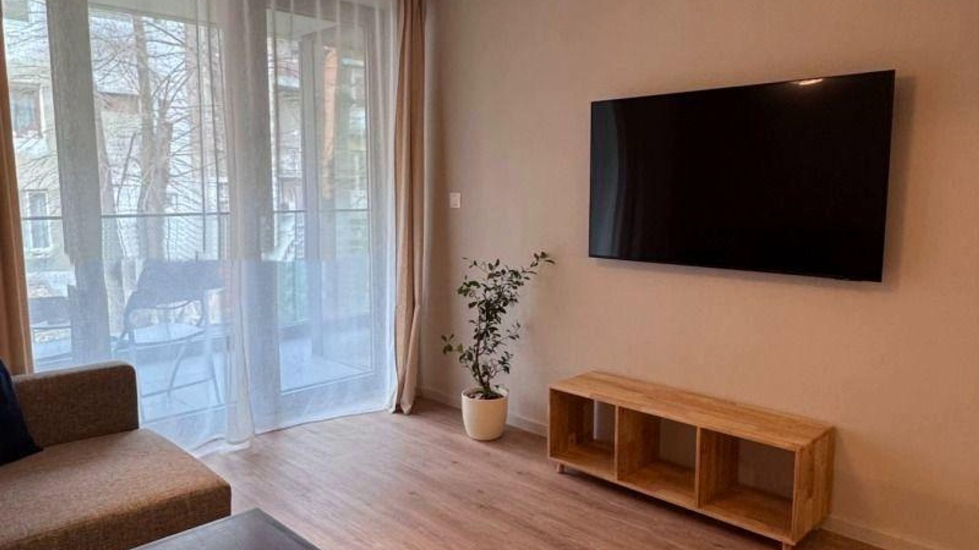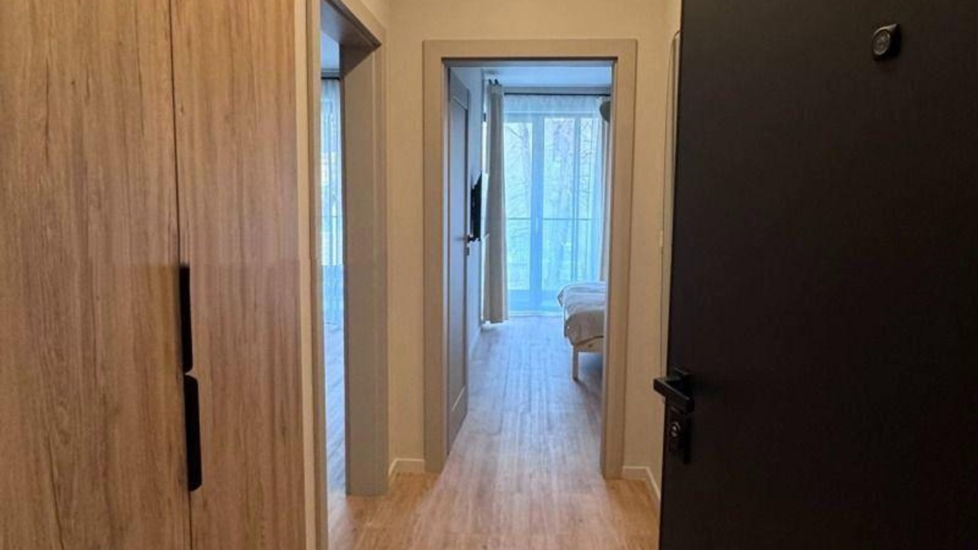 <br/>Жилището е с площ 63 кв.м, разположено на 2-ри етаж в нова тухлена сграда от 2024 г. Изложението Изток/Запад осигурява естествена светлина през целия ден.