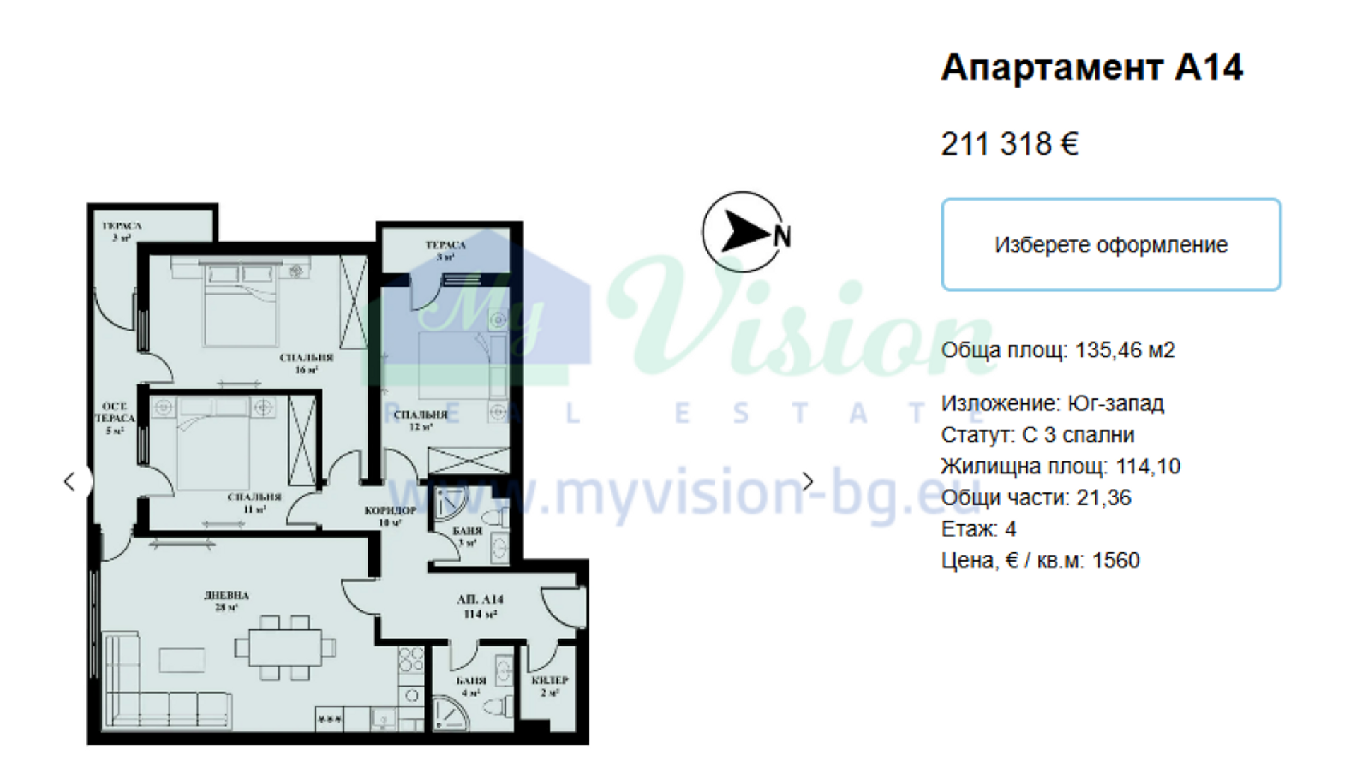 | Цена на кв.м. | € 1630 |