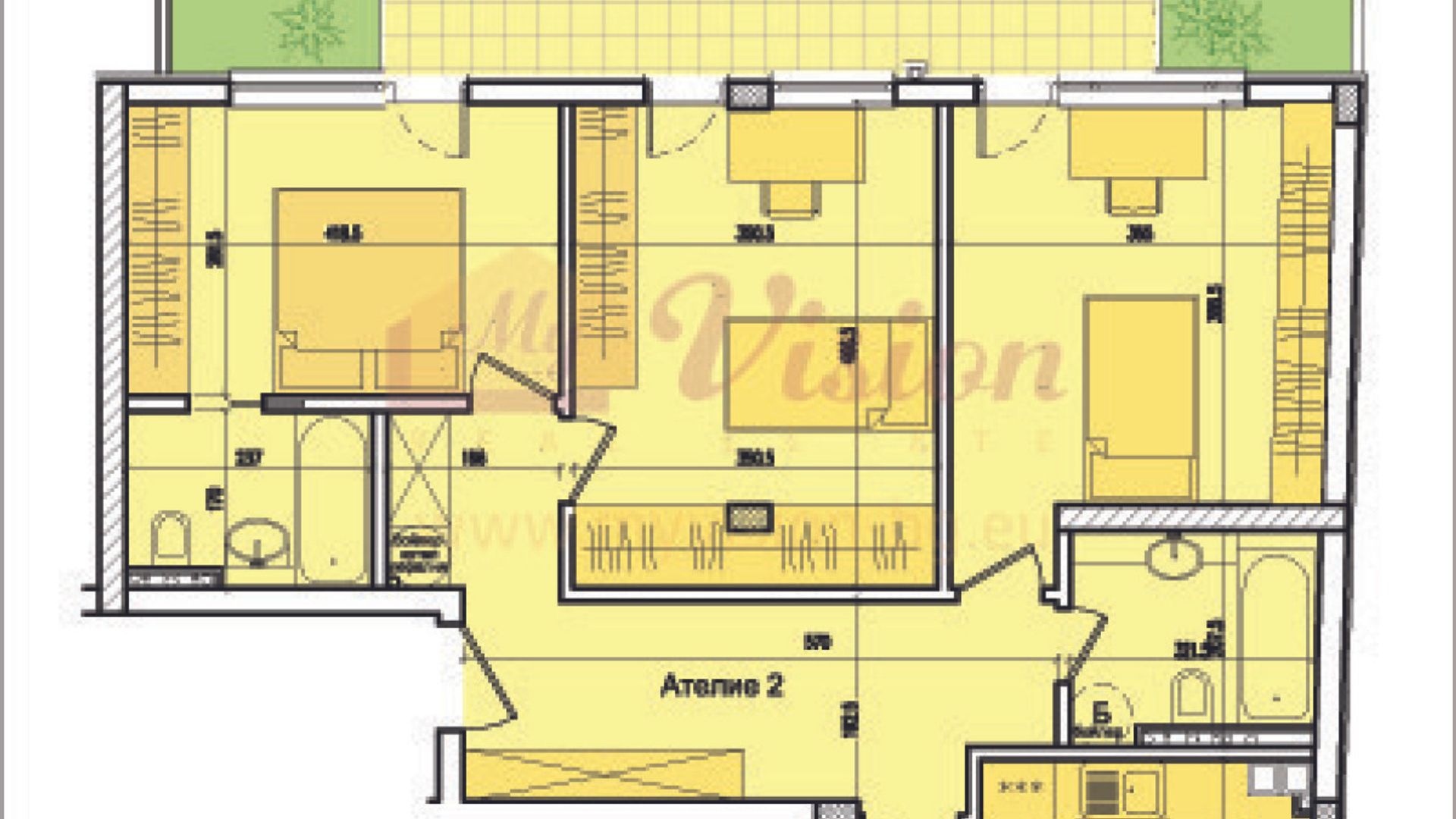 Референтен код: GBSKV104 (моля, споменете този код, когато се свързвате с нас). Представяме ви четиристаен апартамент за продажба в новострояща се малка луксозна жилищна сграда, намираща се в кв. Кръстова вада. Намира се на на 700 метра от МОЛ Парадайз, от метростанция Витоша и от Южния парк и на 100 метра от бул. Черни връх и от бъдещата станция на метрото. Сградата е с най-висок клас алуминиева дограма с тройни стъклопакети, топлоизолация, шумоизолация и водно подово отопление, осигурявано от газови котли или термопомпи. Фасадата на сградата е с каменни облицовки, настилките в общите части са от камък и гранитогрес, терасите са с настилки от гранитогрес и стъклени парапети. Сградата разполага с две нива подземни гаражи и паркоместа, с луксозен асансьор и с открита озеленена тераса за общо ползване над втория етаж. Апартаментът е тип ателие с прилежащ двор и е разположен на партерен етаж. Площта на апартамента е 177 кв. м, мазе - 3, 30 кв. м и двор - 13,40 кв. м. Този апартамент може да бъде ваш за 290000 евро без ДДС. Има възможност за закупуване на гараж. Ако искате повече информация относно този имот, можете да се свържете с Галя Боянова: +359894232238 или по имейл: galya@myvision-bg.eu Посетете още от нашите предложения, достъпни на www.myvision-bg.eu Партньор на кредитни институции и банки, съдействие за получаване на кредити.