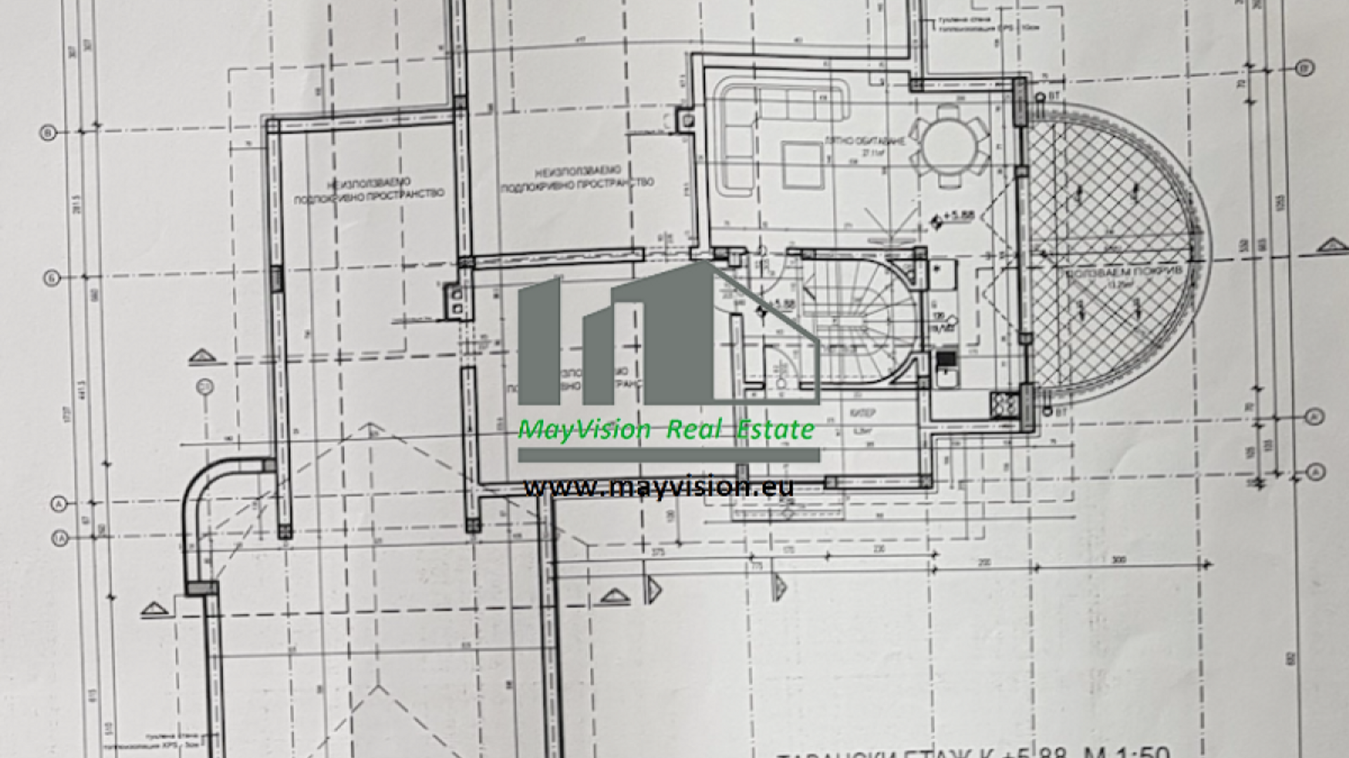 Референтен код: ZNSB006 (моля, споменете този код, когато се свързвате с нас). Ние от MyVision Real Estate сме горди да Ви предложим къща в Бояна на груб строеж.Урегулиран поземлен имот: 900кв.м. с общо РЗП 544 кв.м. Сградата е на 4 нива, има и гараж на две нива за 4 автомобила. Улицата е асфалтирана и има целогодишен достъп до имота. Сградата е на 100 метра от Беловодски път. Полуподземен етаж 99 кв.м.- Това ниво е предназначено за лятно обитаване, спорт и сауна, килер и котелно. Топлата връзка към етажите се съществява през стълбищна клетка. Има директен изход към двора. Първи етаж 198 кв.м. - От главния жилищен вход е подхода към централното предверие с гардеробно помещение. Чрез него се осъществява връзката към кухнята и дневната. От кухнята има директна връзка с гаража и дневната. Втори етаж 197 кв.м. - На това ниво има двоен гараж на нивото на улицата, 5 спални помещения, два санитарни възела и дрешник. Едната от спалните е със собствен санитарен възел. Тавански етаж 49 кв.м. - Това ниво има връзка с втори етаж чрез стълбище. Тази къща ще бъде ваша за 850 000 евро! Ако поискате повече информация относно този имот, можете да се свържете с Живка Николова: +359 889 722837 или по имейл: zhivka@myvision-bg.eu Посетете още от нашите предложения, достъпни на www.myvision-bg.eu