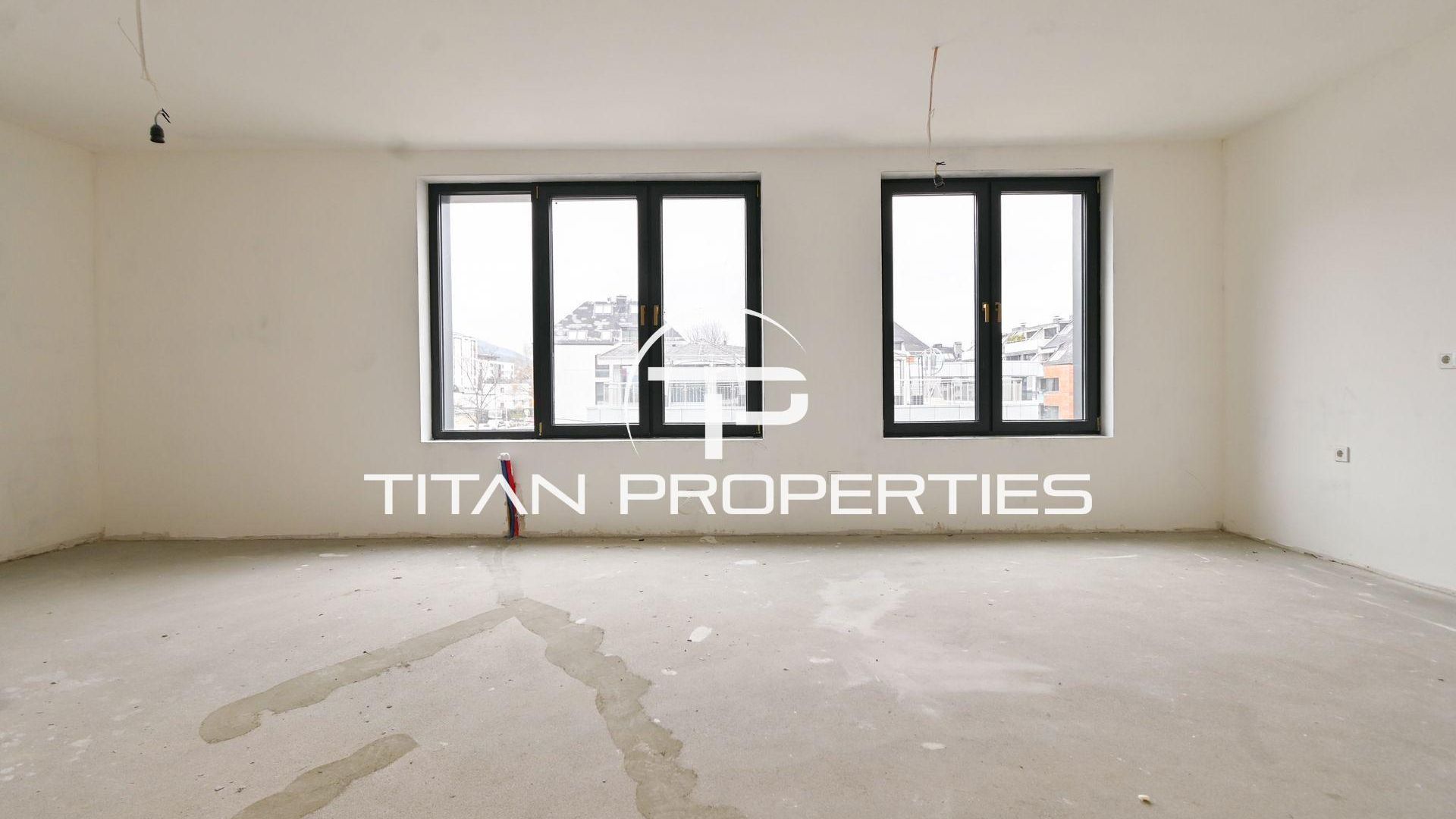 <br/>Титан Пропъртис офис - Черни връх с радост предлага на Вашето внимание тристаен апартамент за продажба в кв. Драгалевци. Жилището със застроена площ 116,31 кв.м. е разположено на втори етаж от общо четири етажа в нова бутикова сграда на етап Акт 15, която ще бъде въведена в експлоатация (Акт 16) края на 2026 г. Изложението Запад/Север осигурява естествена светлина през целия ден. Разпределението включва входно антре, хол с кухненски бокс, две спални, две бани с тоалетна и тераса. Предлага се на шпакловка и замазка, което позволява индивидуален избор на довършителни материали и дизайн. Отоплението е на газ и отговаря на съвременните стандарти за енергийна ефективност.