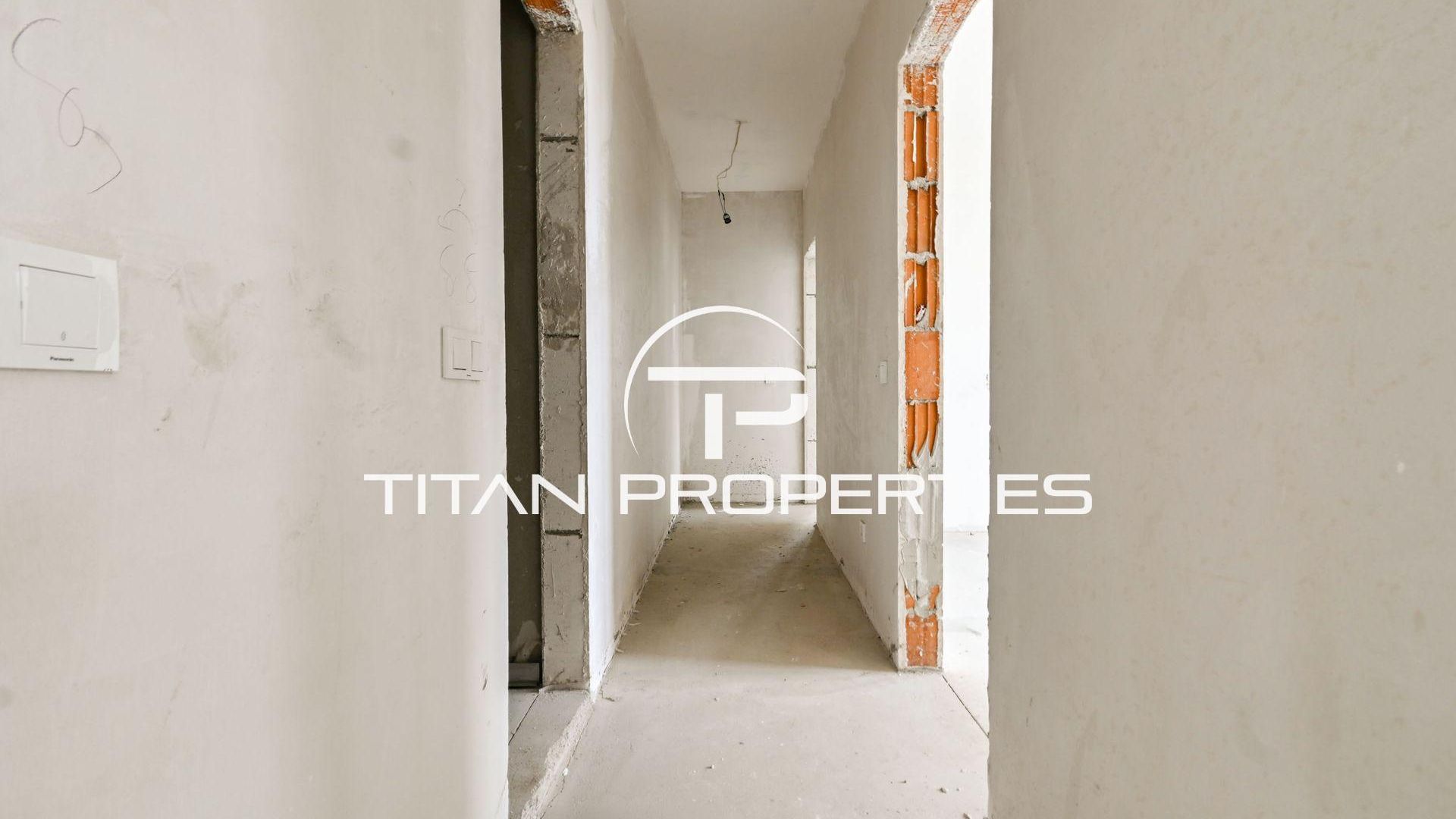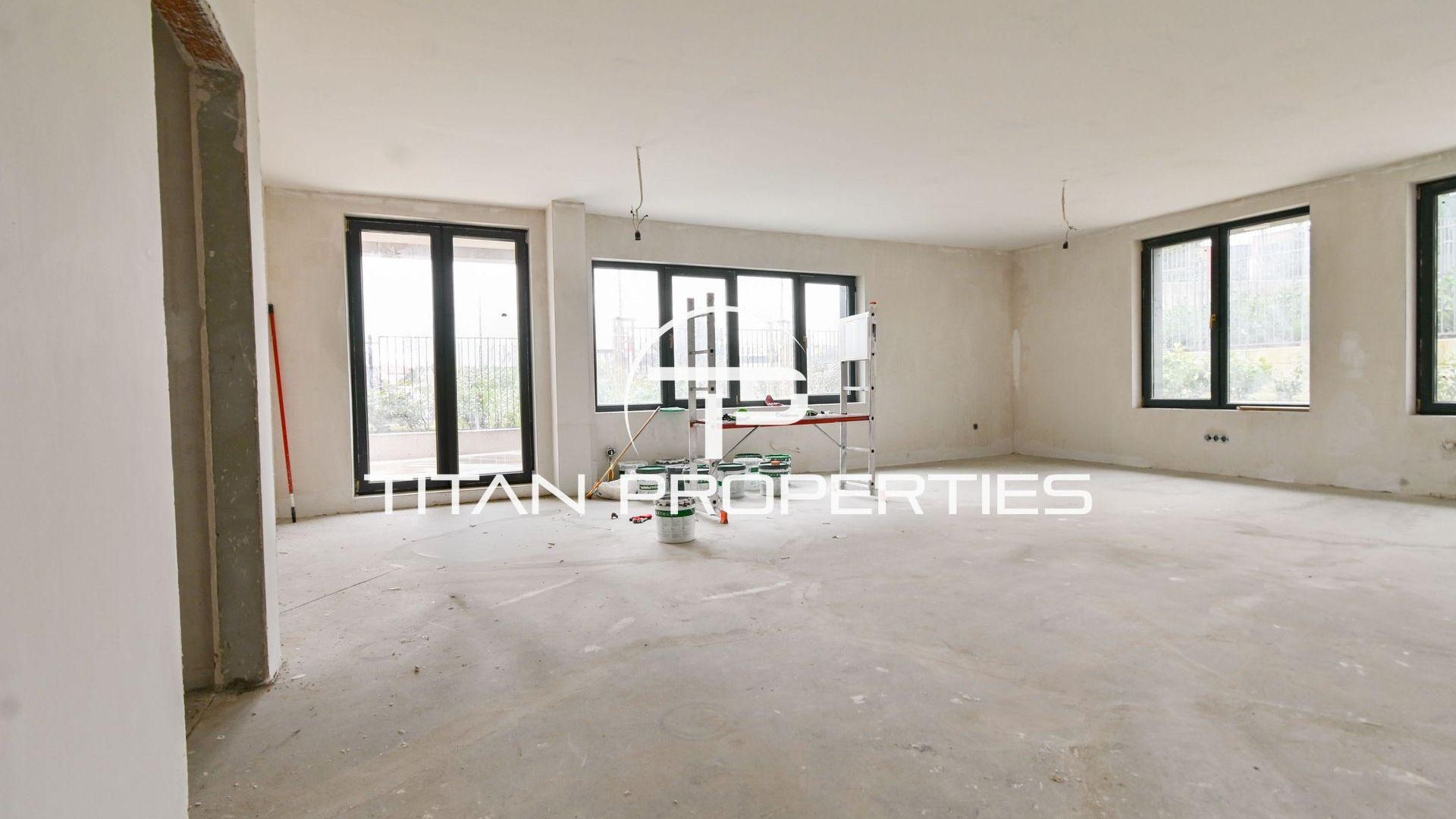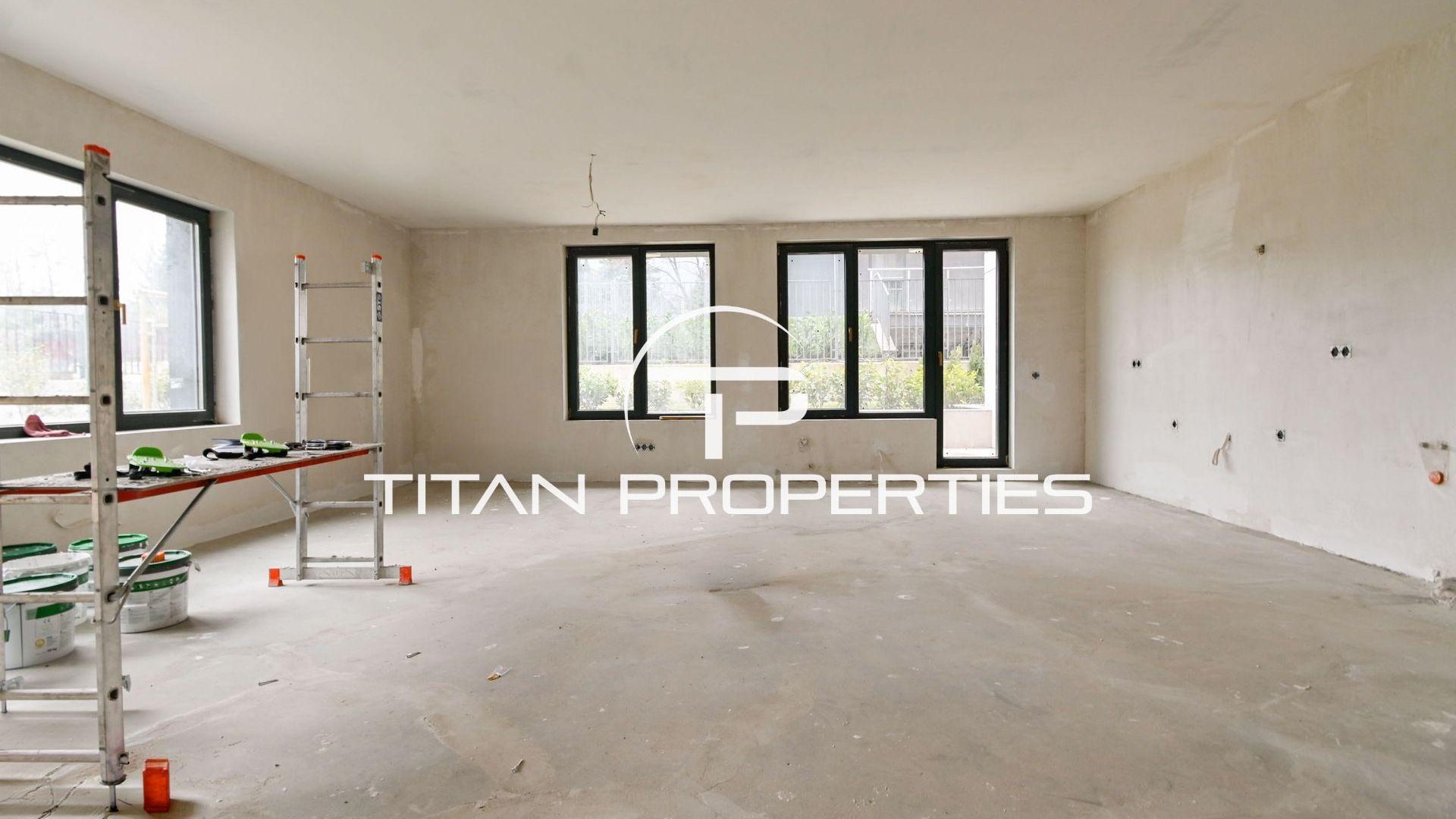 <br/>Титан Пропъртис офис - Черни връх с радост предлага на Вашето внимание тристаен апартамент за продажба в кв. Драгалевци. Просторният имот със застроена площ от 126,8 кв.м. е разположен на партерен етаж от общо четири етажа в нова бутикова сграда на етап Акт 15, която ще бъде въведена в експлоатация (Акт 16) края на 2026 г. с изложения Изток, Север и Юг. Жилището се предлага на шпакловка и замазка и включва входно антре, две спални, хол с кухненски бокс, две бани с тоалетна, склад и тераса от 29 кв.м на отделна цена. Локалната отоплителна система осигурява ефективност и икономичност. Новото строителство гарантира съвременни материали и високо качество. Благодарение на функционалния план и просторните помещения това предложение е отличен избор за семейство, търсещо съвременен дом в предпочитан столичен район.