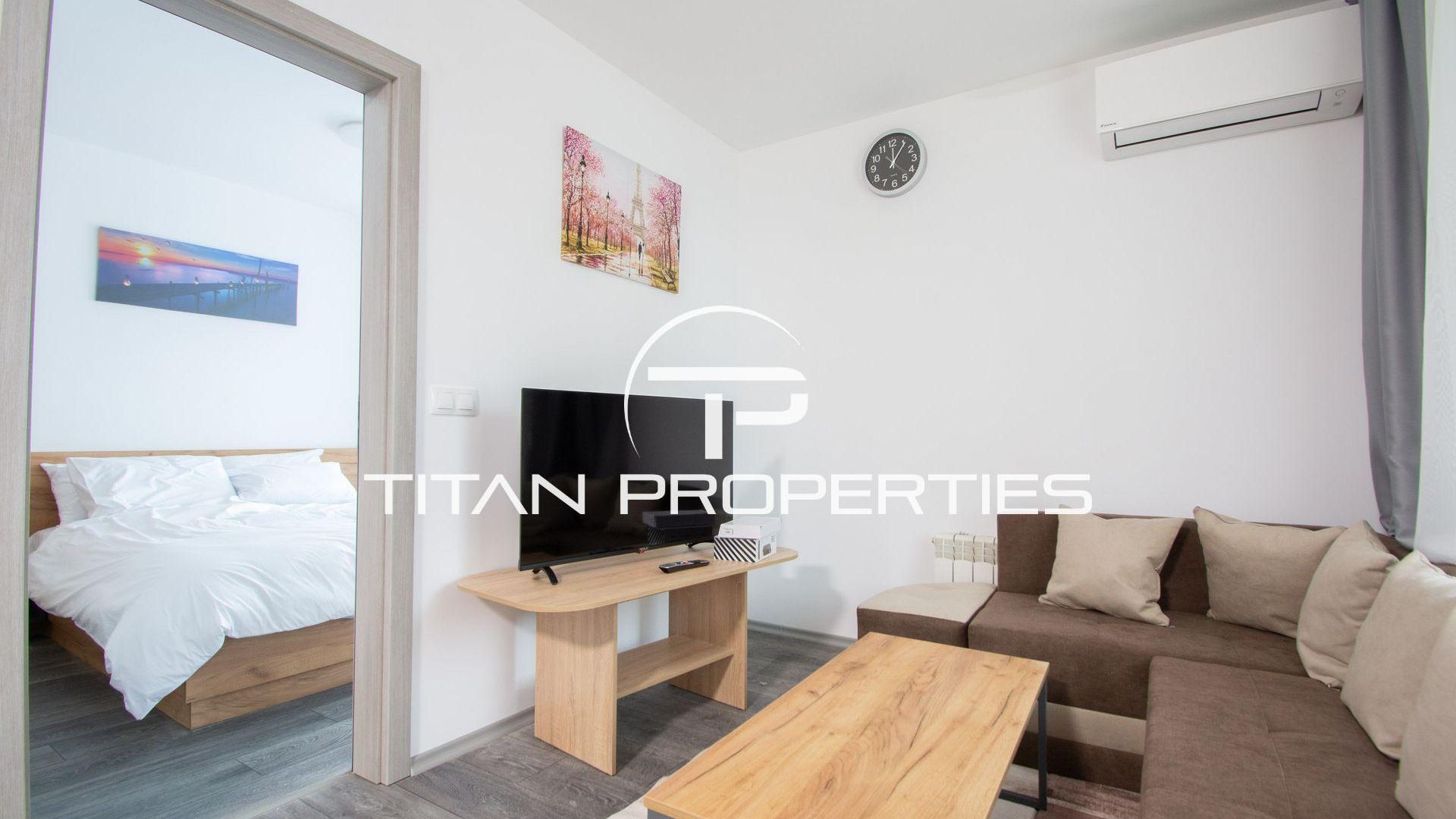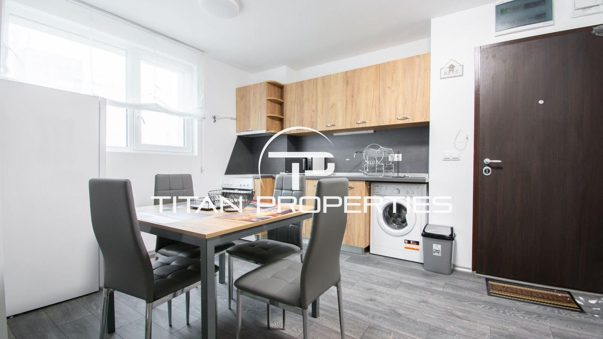 <br/>Титан Пропъртис офис - Черни връх с радост предлага на Вашето внимание двустаен апартамент за продажба в кв.Студентски град. Жилището със застроена площ 54,2 кв.м. е разположено на 2-ри етаж от общо 5 етажа в нова сграда. С изложение Изток/Запад всяка стая е добре осветена през целия ден. Интериорът включва дневна с трапезария и кухненски бокс, спалня, баня с тоалетна, склад и балкон. Обзаведен и оборудван с електрическо отопление, апартаментът в ново строителство съчетава функционалност и съвременен стил – подходящ избор за двойка или малко семейство.