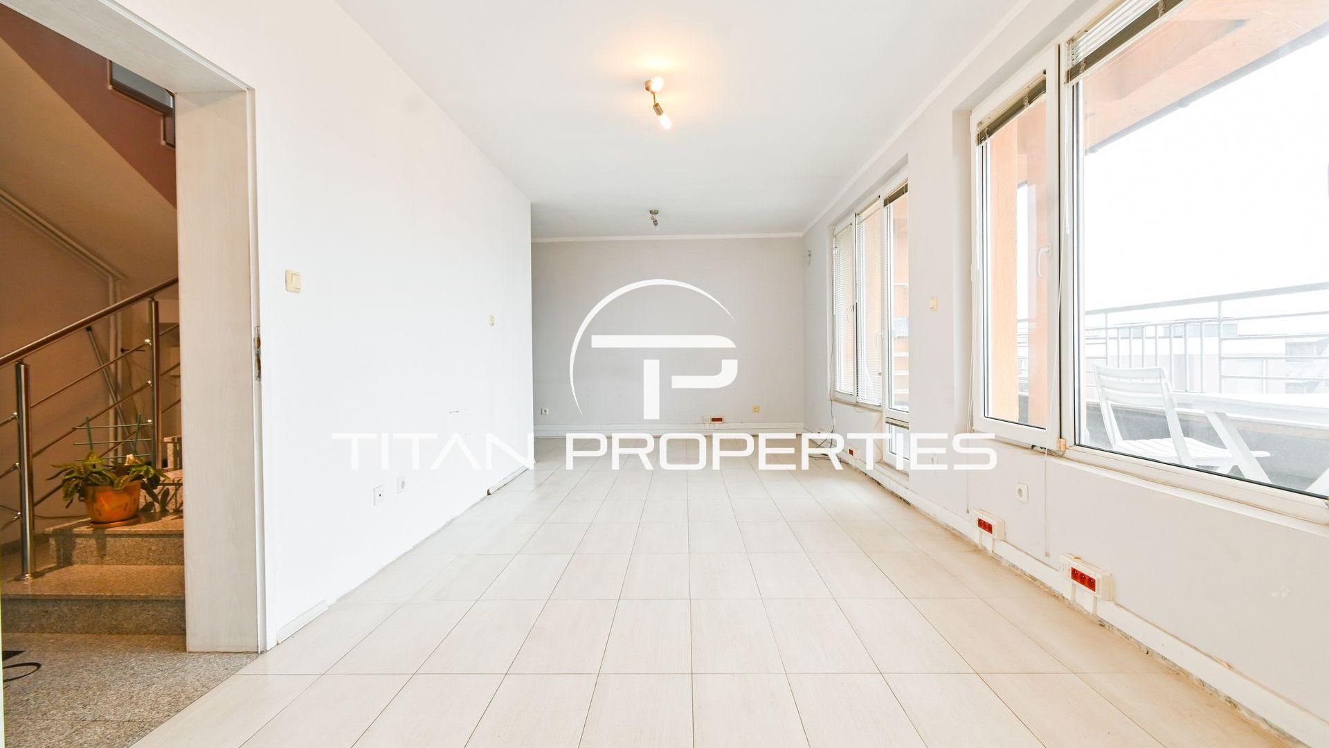 С АКТ 16! Титан Пропъртис - офис Бул.България , има удоволствието да Ви представи мезонет в ж.к. Манастирски ливади - комуникативно място , в близост до спирки на градски транспорт , магазини, детска градина, училище, медицински център и други удобства. Намира се и в непосредствена близост до Южен парк!