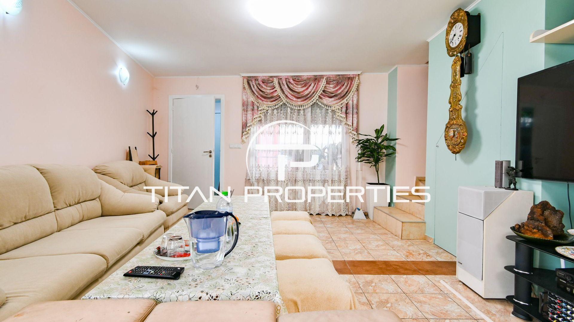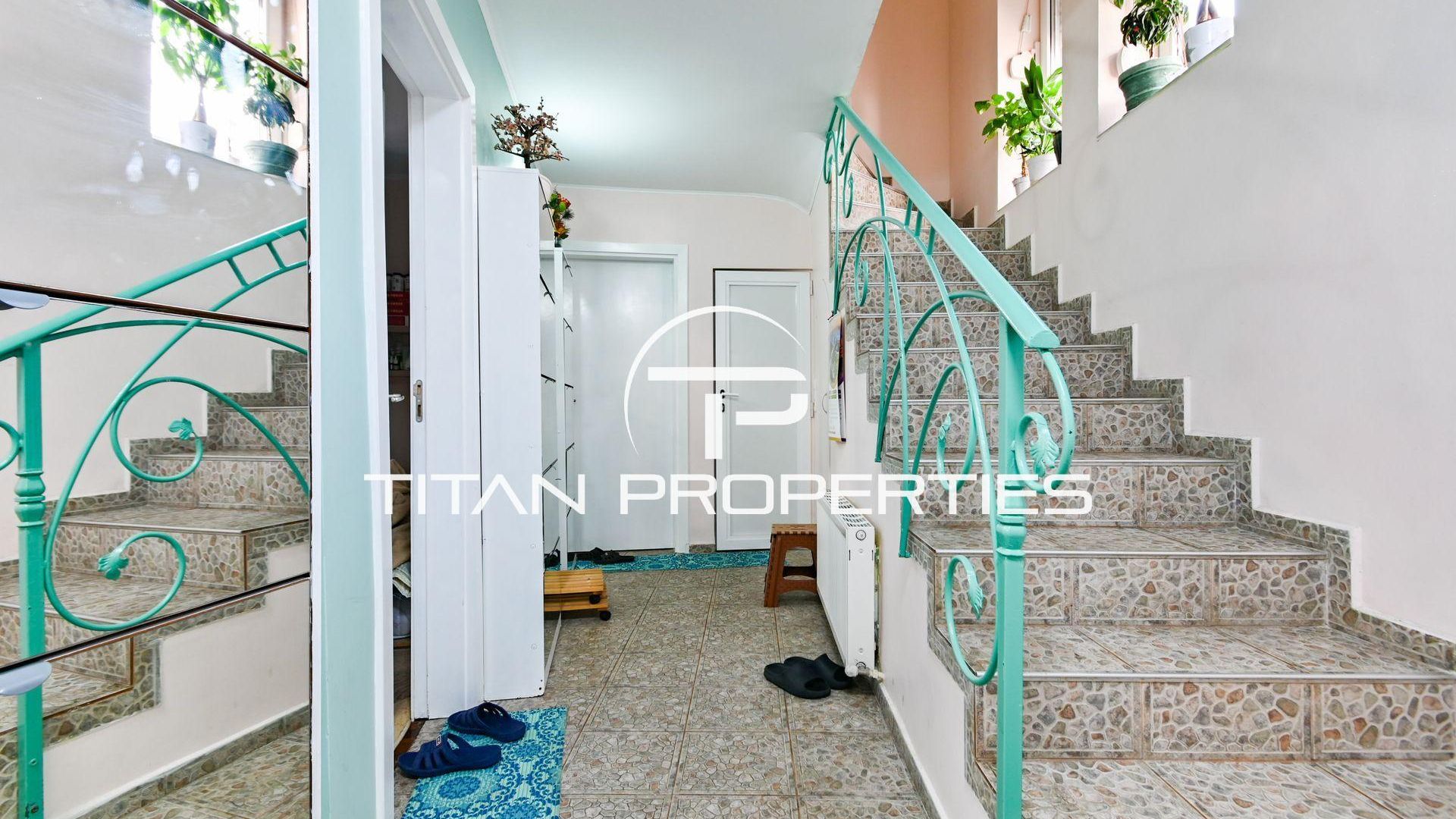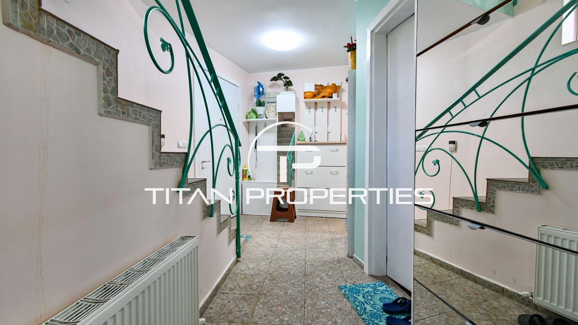 <br/>Титан Пропъртис с радост предлага на Вашето внимание къща за продажба в ж.к. Надежда 2. Жилището с разгъната застроена площ от 168 кв.м. се разполага на два надземни етажа и един сутеренен. На първи етаж са разпределени антре, хол с кухненски бокс, две спални, баня с тоалетна и излаз към двора от всяка стая. Вторият етаж предлага хол с кухненски бокс, три спални, баня с тоалетна и две тераси. В сутерена са разположени антре, стая, баня с тоалетна и мокро помещение. Изложението е Изток/Запад/Юг. Къщата е обзаведена и отоплява се локално. И разполага с двор от 168 кв.м.