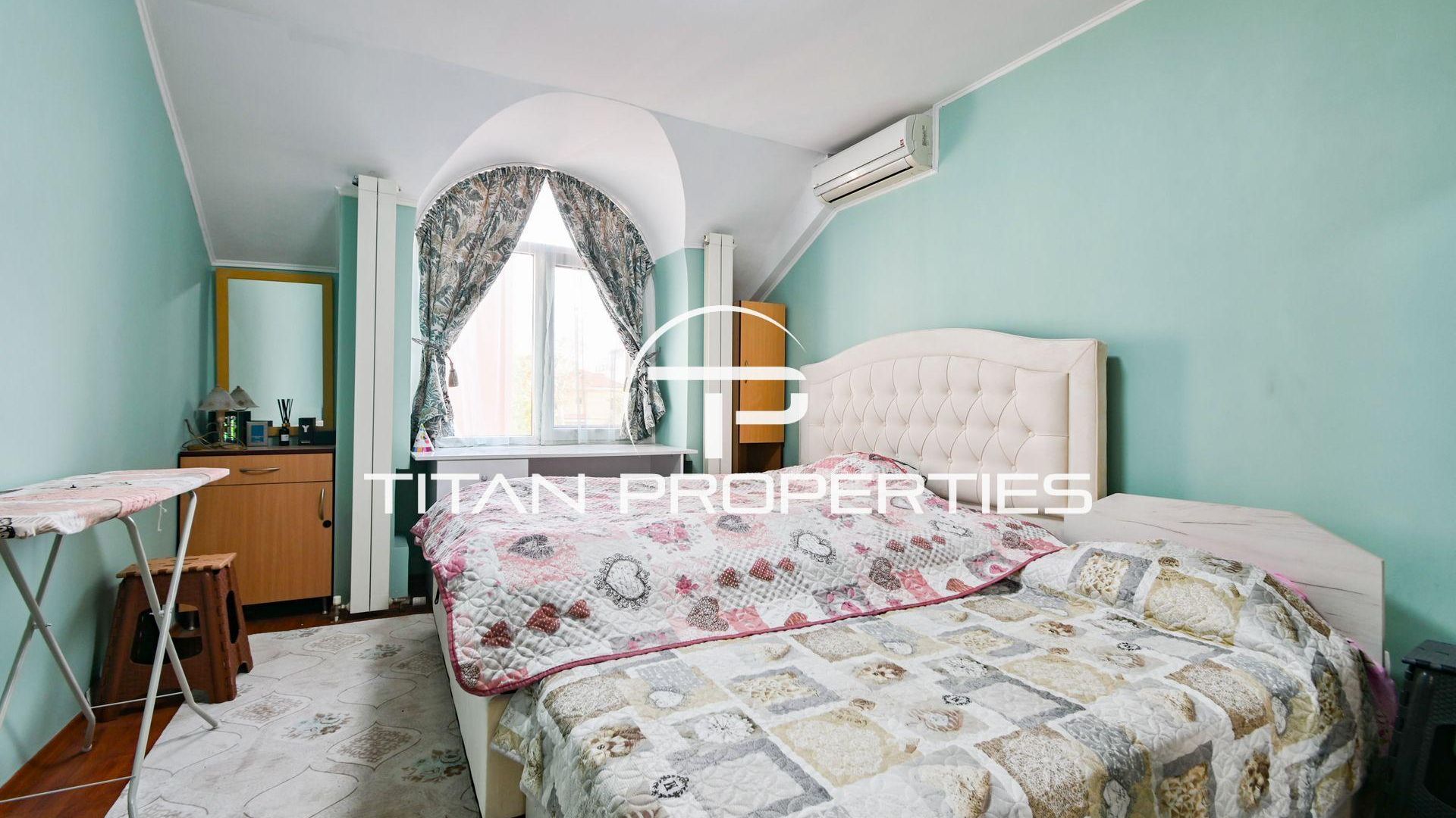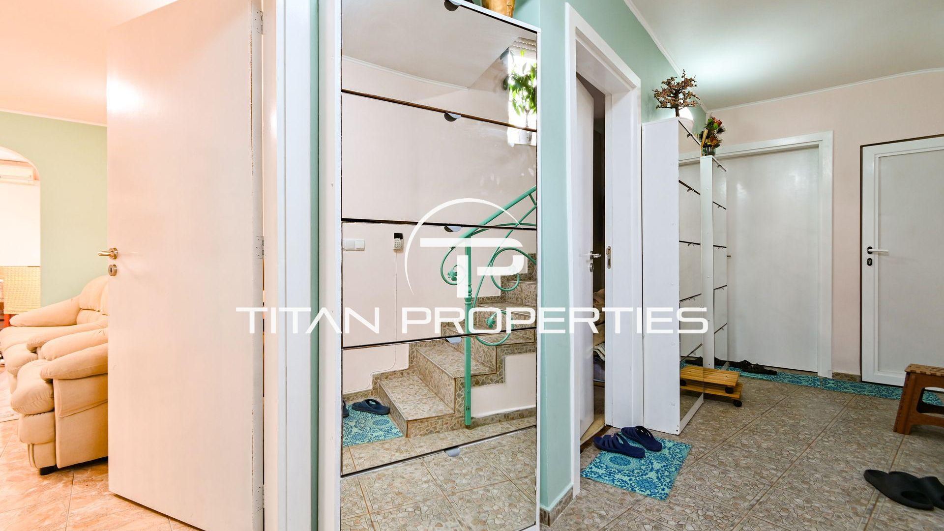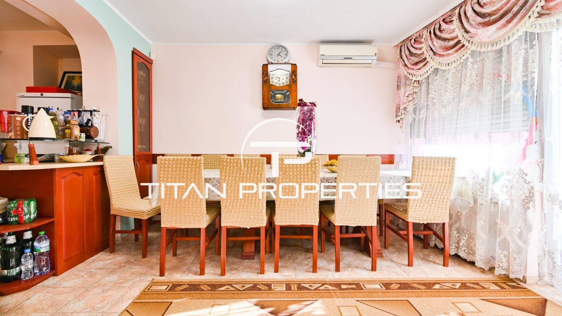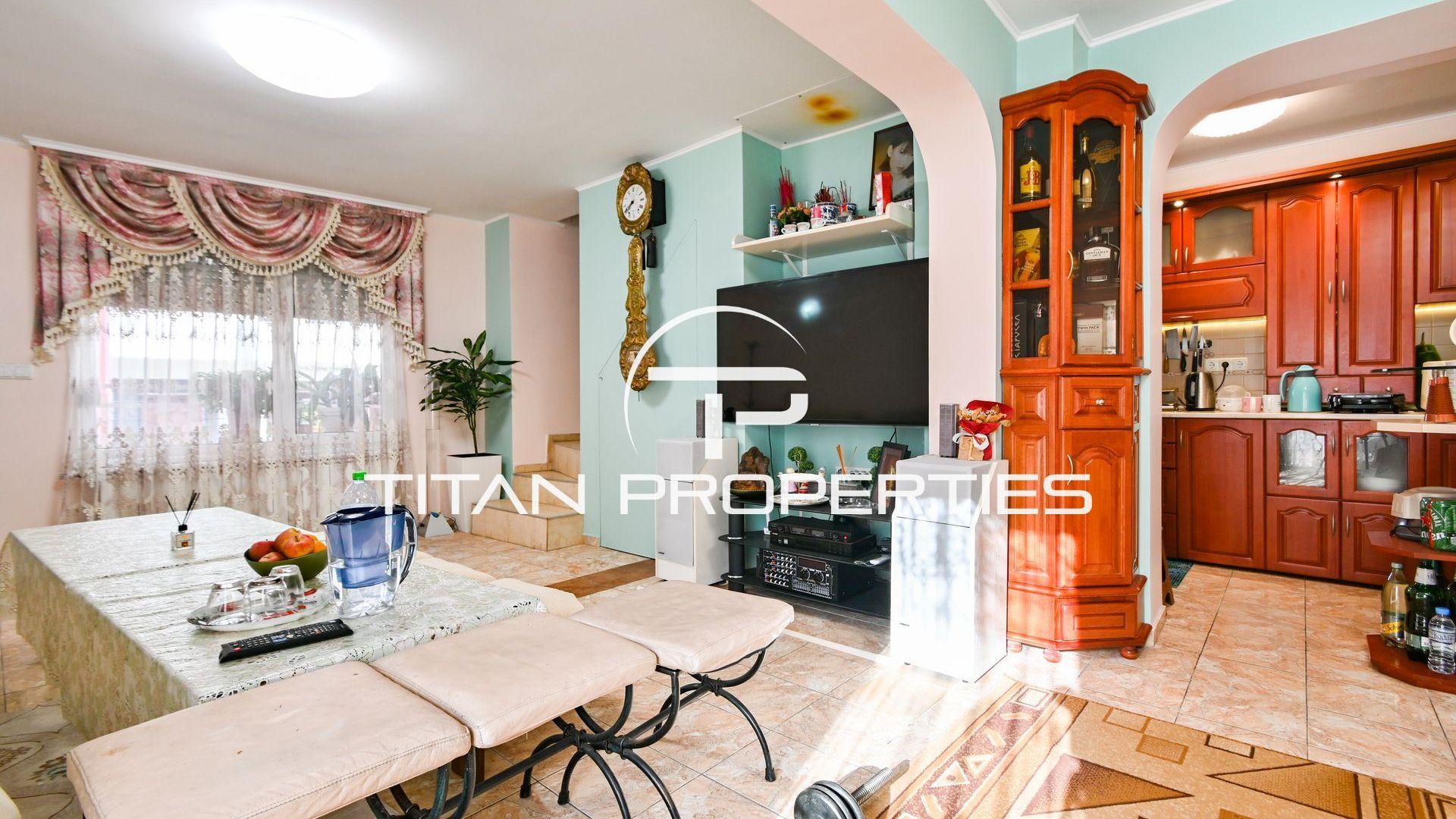 <br/>Титан Пропъртис с радост предлага на Вашето внимание къща за продажба в ж.к. Надежда 2. Жилището с разгъната застроена площ от 168 кв.м. се разполага на два надземни етажа и един сутеренен. На първи етаж са разпределени антре, хол с кухненски бокс, две спални, баня с тоалетна и излаз към двора от всяка стая. Вторият етаж предлага хол с кухненски бокс, три спални, баня с тоалетна и две тераси. В сутерена са разположени антре, стая, баня с тоалетна и мокро помещение. Изложението е Изток/Запад/Юг. Къщата е обзаведена и отоплява се локално. И разполага с двор от 168 кв.м.