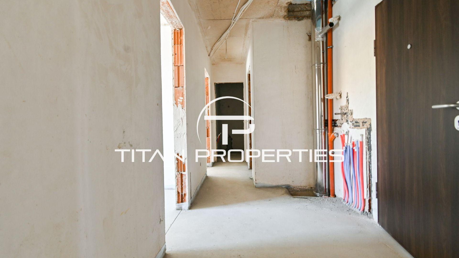 <br/>Титан Пропъртис офис - Бул.България с радост предлага на Вашето внимание тристаен апартамент за продажба в кв. Овча купел. Жилището със застроена площ от 76,33 кв.м е разположено на 3-ти етаж от общо 10 етажа в нова сграда на етап Акт 14, която ще бъде въведена в експлоатация края на 2026 г. Изток/Юг изложението осигурява обилна естествена светлина в просторните помещения.