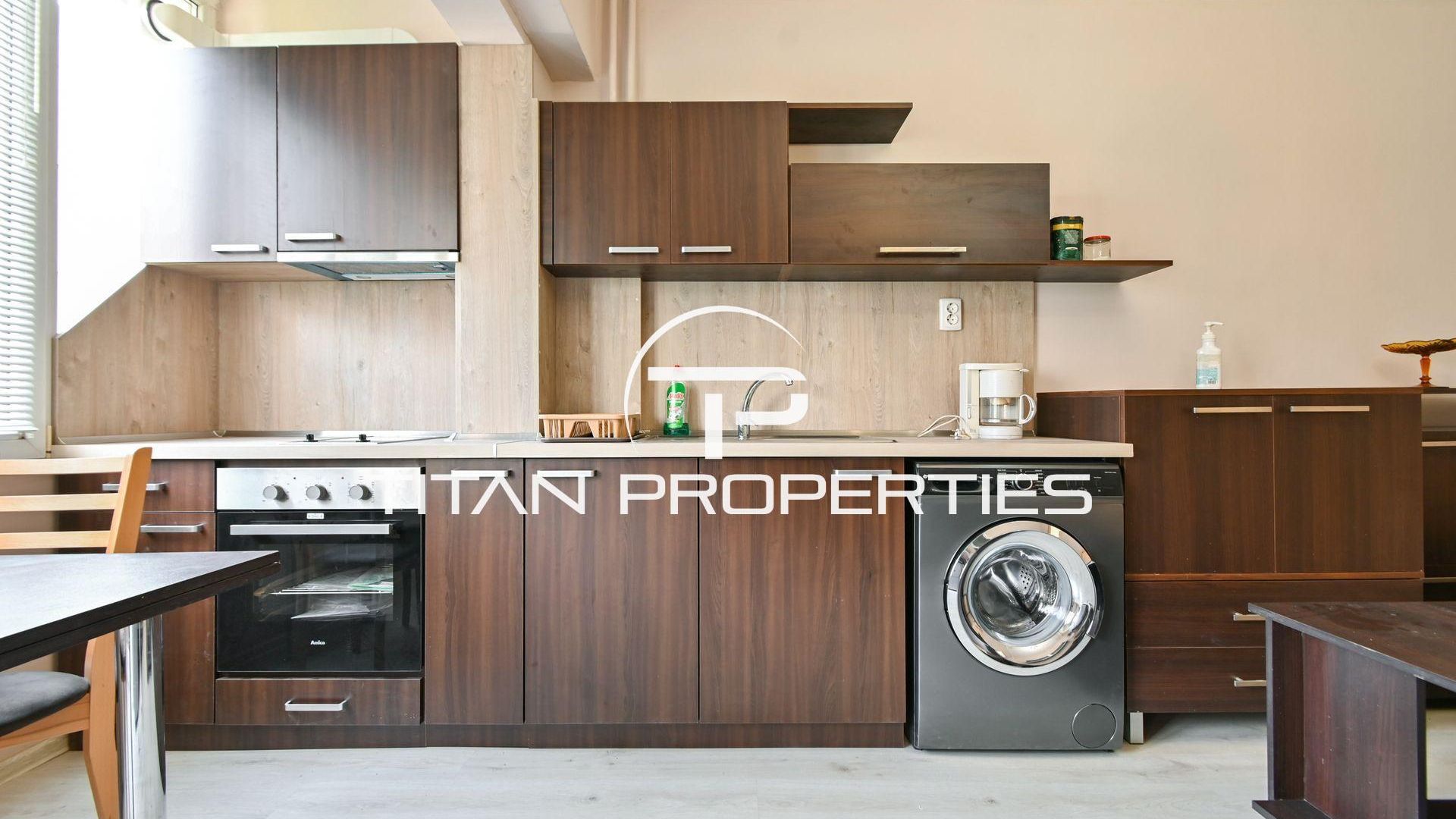 <br/>Имотът се отличава с функционално и добре обмислено разпределение и към момента е реално обособен в две самостоятелни жилищни единици. Всяка част разполага със собствен хол с кухненски бокс, спалня и баня с тоалетна. Жилището е с наематели, което го прави отлична възможност за инвестиция с незабавна доходност и без необходимост от допълнителни усилия по отдаване.
