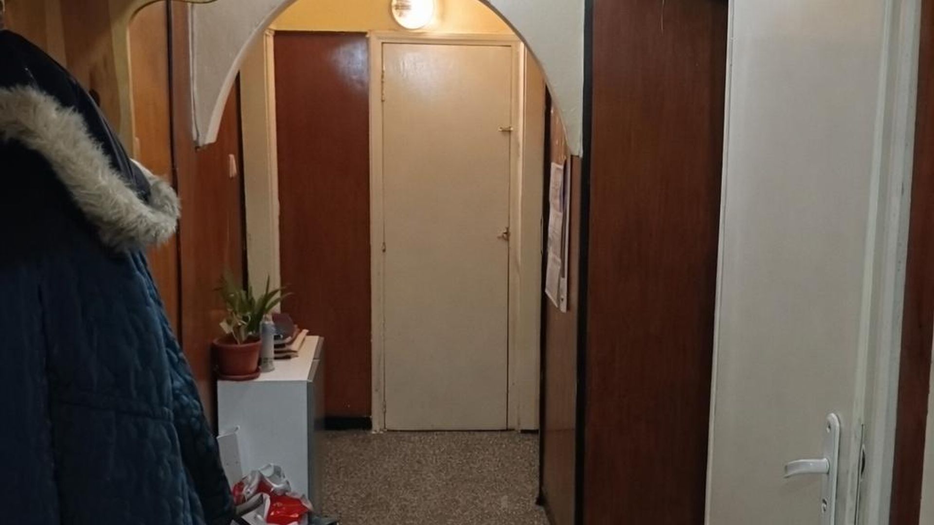 <br/>Разпределението включва хол с тераса, кухня с усвоена тераса, спалня, килер и отделни баня и тоалетна. Апартаментът е обзаведен и отопляващ се на електричество, което гарантира удобство през студените месеци. Панелната конструкция осигурява стабилност, а локацията – бърз достъп до ключови точки в градската среда.