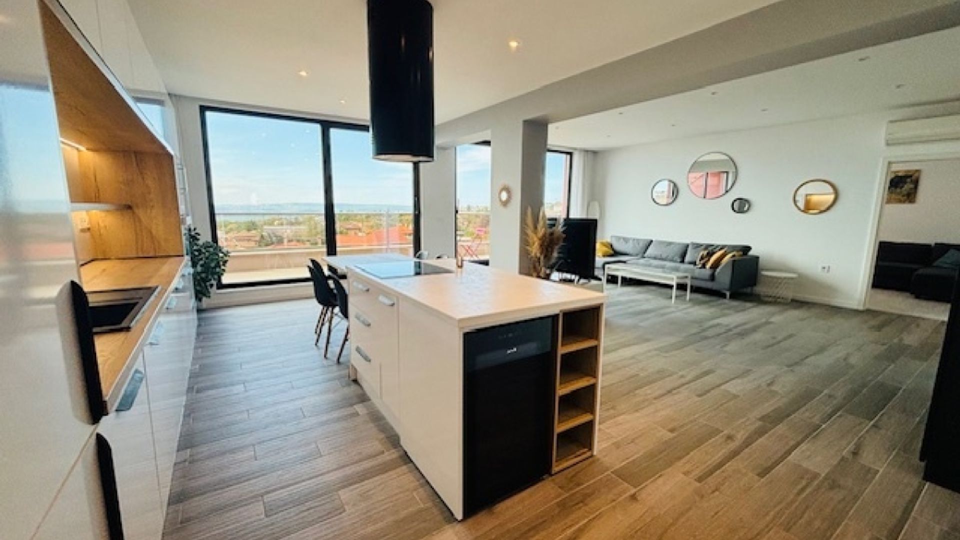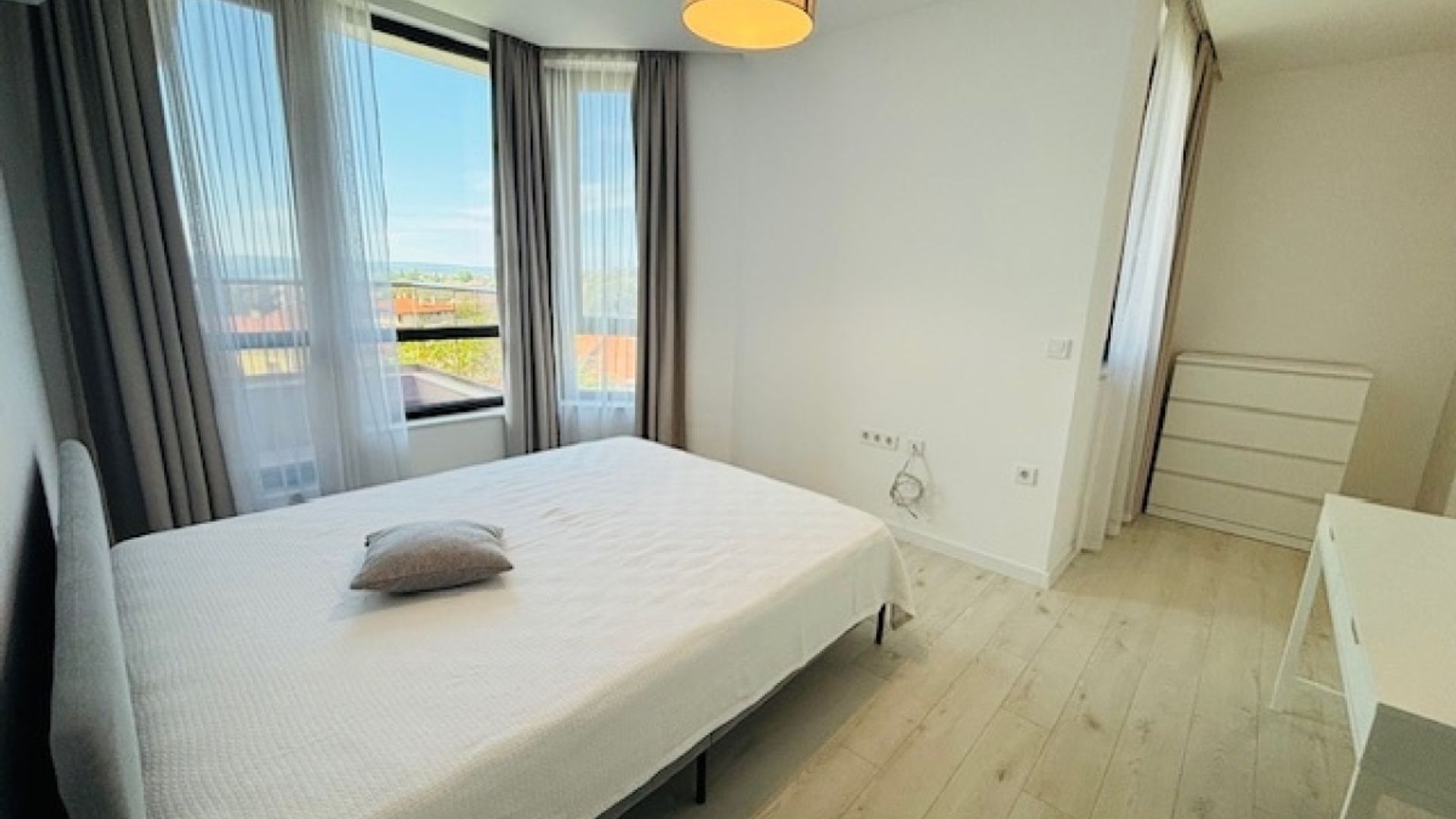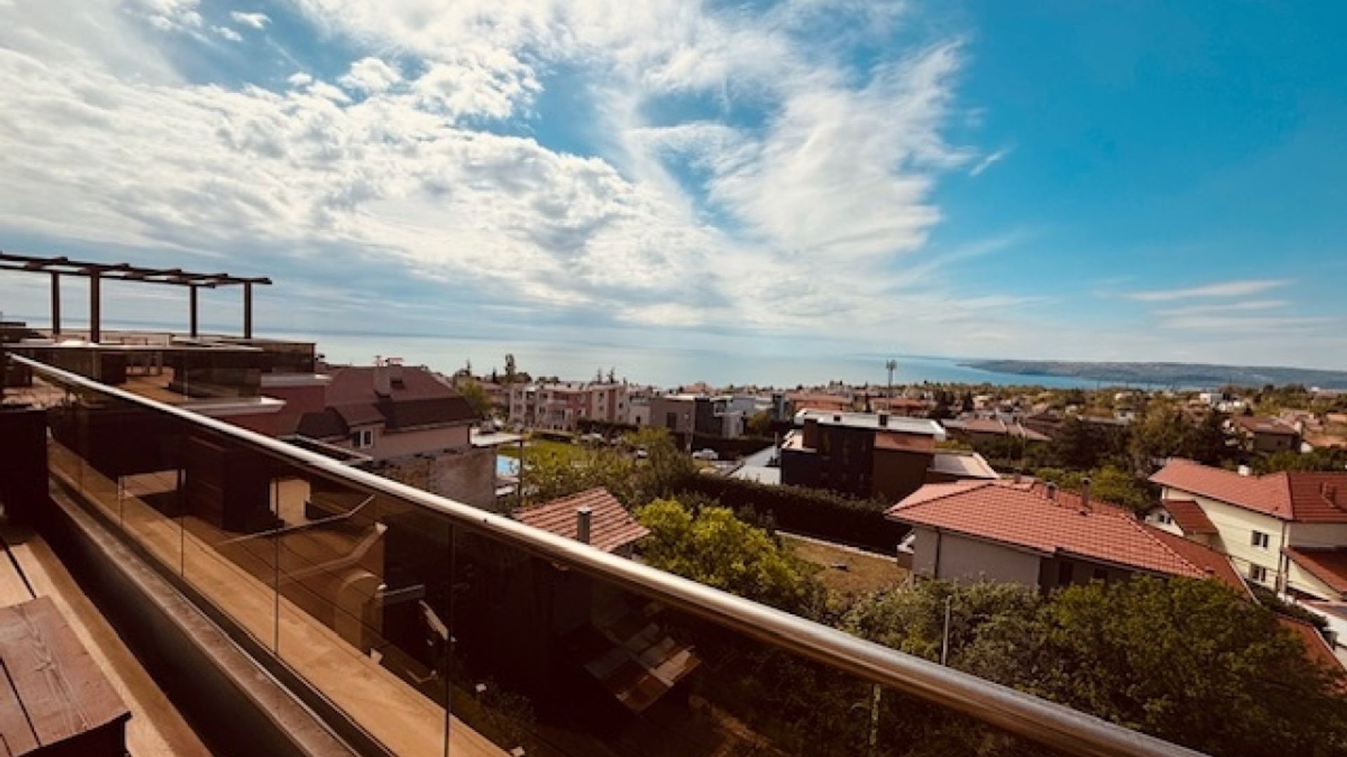 ЯВЛЕНА ви предлага, страхотно бижу с отличен достъп в района на Горна Трака, в сграда ново строителство, с отлично поддържани общи части, на 15 минути пешеходно от магазин и спирки и на 10 мин. с кола от центъра на Варна и Морската градина. Имотът се състои от просторен дневен тракт с кухня с излаз към уникална панорамна тераса, родителска спалня със собствен санитарен възел и дрешник, още две спални, общ санитарен възел и два килера. Жилището е уютно, светло, слънчево и обзаведено с всичко необходимо за едно домакинство. Наличие на подово отопление. Един невероятен оазис, подходящ за вашият бъдещ дом, който е с ползване на 240 кв.м покривна тераса с барбекю и зона за отдих със спираща дъха гледка към морето и град Варна. Към имота има две подземни паркоместа. А в сградата са на разположение фитнес, сауна и отопляем външен басейн за живущите там. Подходящ за целогодишно живеене, в район с асфалтов достъп.