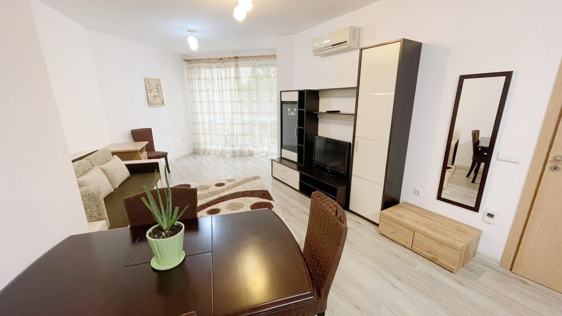 <br/>Жилището се предлага напълно обзаведено и разполага с всичко необходимо за едно домакинство.