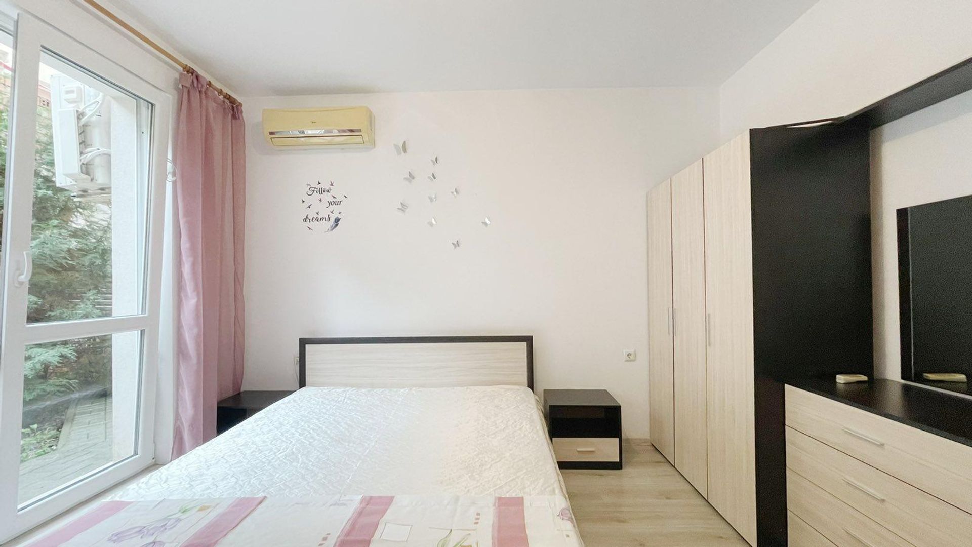 <br/>Апартамента е разположен в тих и спокоен район, в близост до спирки на градски транспорт, хранителни магазини, училища