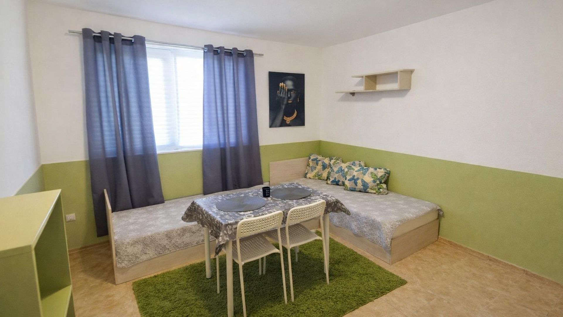 <br/>Апартамента е разположен в тих и спокоен район, в близост до спирки на градски транспорт, хранителни магазини.