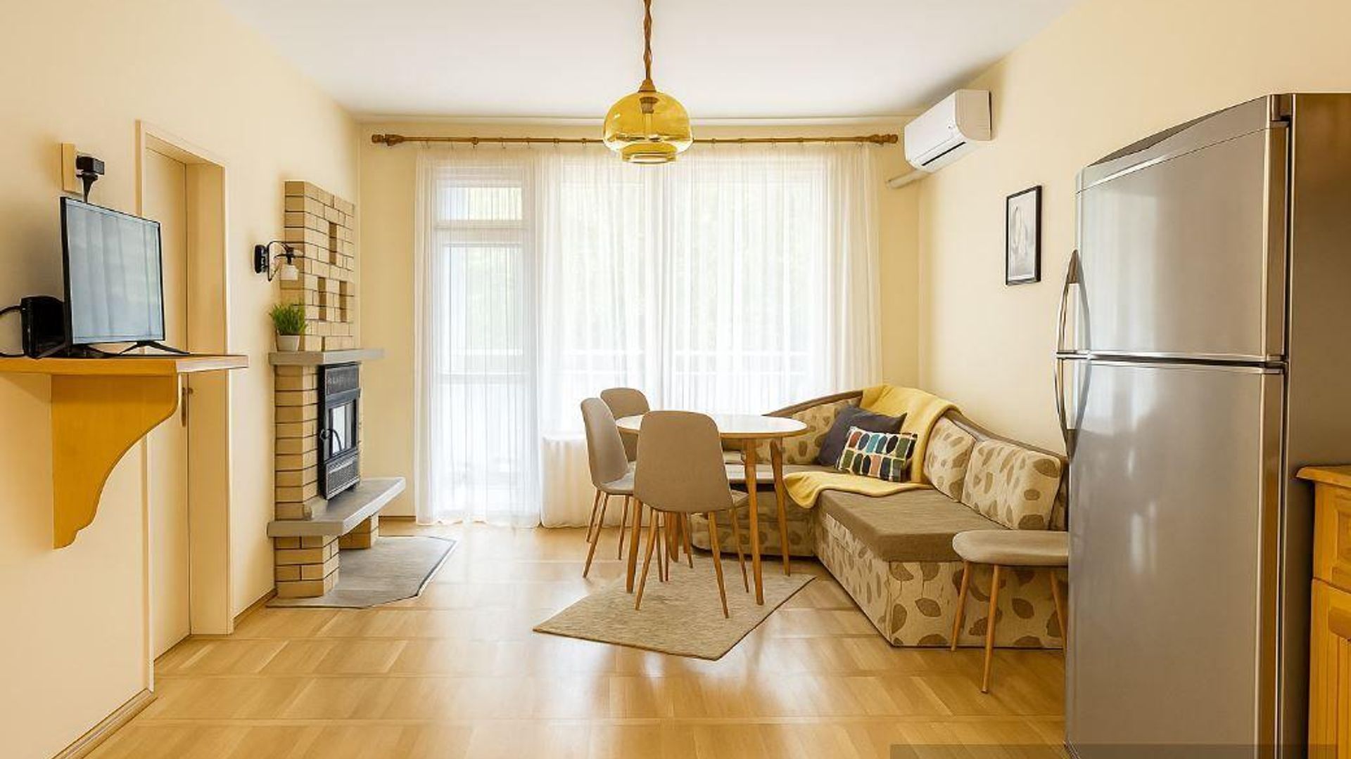 <br/>Разпределение: входно антре, всекидневна с кухненски бокс, две спални, баня с тоалетна и тераса.