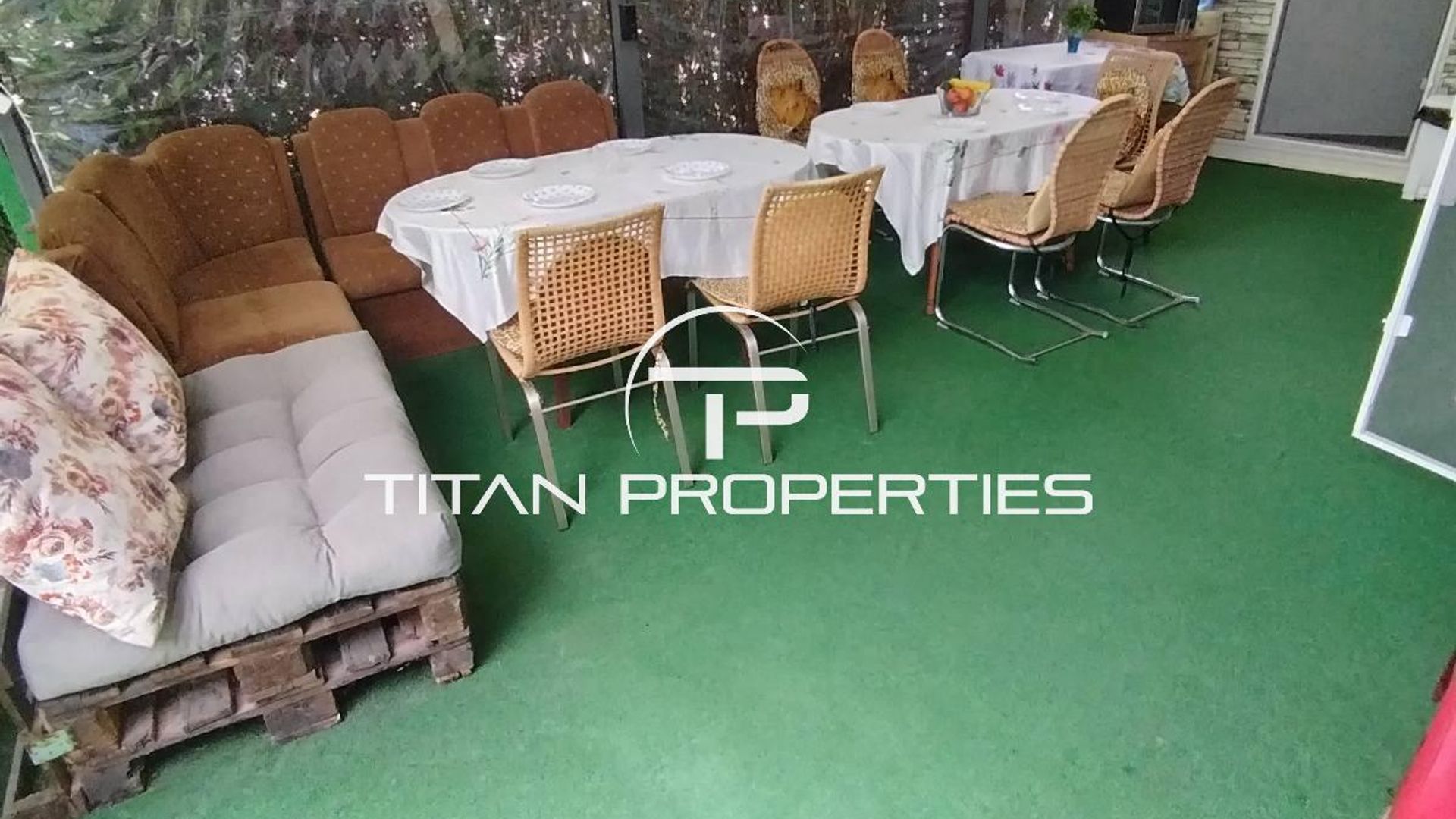 <br/>Имотът разполага с два градински навеса оборудвани с кухня, трапезария, мека мебел и ветробрани!